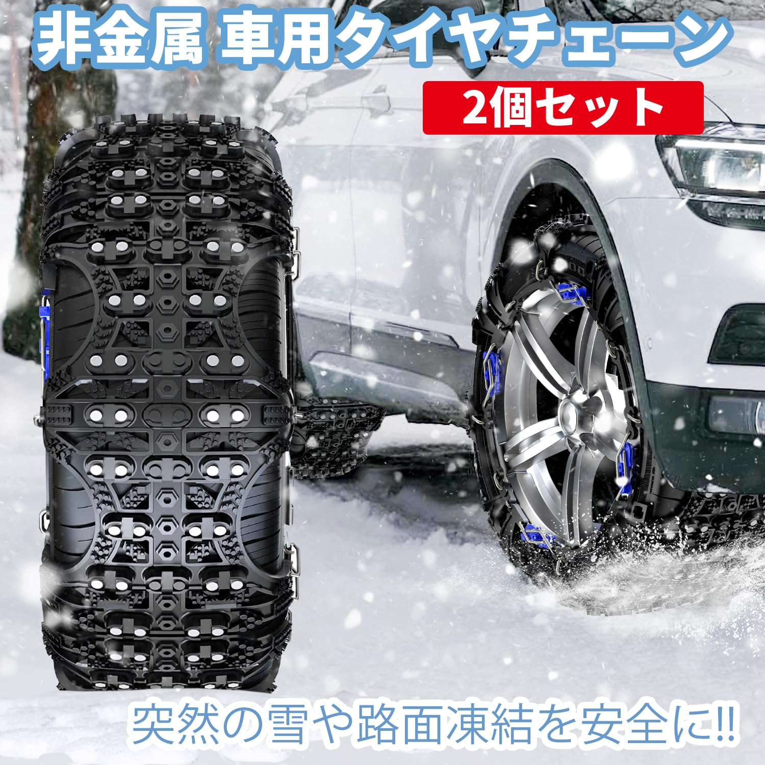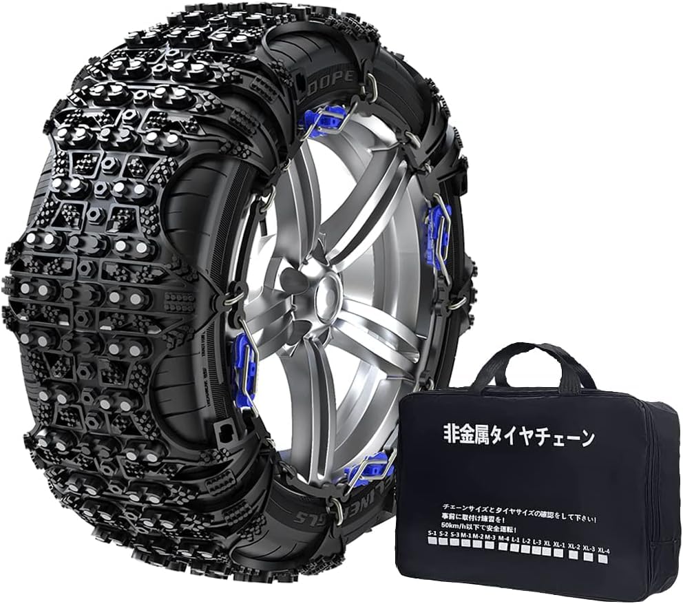 タイヤチェーン 非金属タイヤチェーン 車用スノーチェーン TPU+スチール 頑丈 耐久 静音走行 簡単装着 ジャッキアップ不要 コンパクト収納 チェーン規制 降雪 凍結 冬の雪対策(QX-XL-2)適合:275/40R19 255/45R20 255/50R19 255/55R18 245/55R19 235/55R20 255/60R17 245/60R18 255/65R16