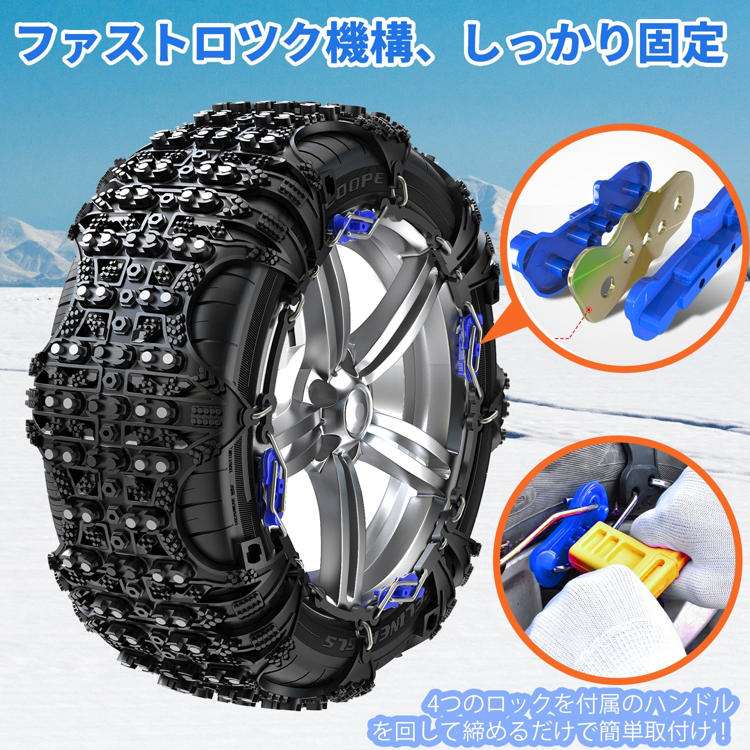 【特価商品】タイヤチェーン 非金属タイヤチェーン 車用スノーチェーン TPU+スチール 頑丈 耐久 静音走行 簡単装着 ジャッキアップ不要 コンパクト収納 チェーン規制 降雪 凍結 冬の雪対策(QX-XL-2)適合:275/40R19 255/45R20 255/50R19 255/55R18 245/55R19 235/55R20 255/60R17 245/60R18 255/65R16 | POPストア