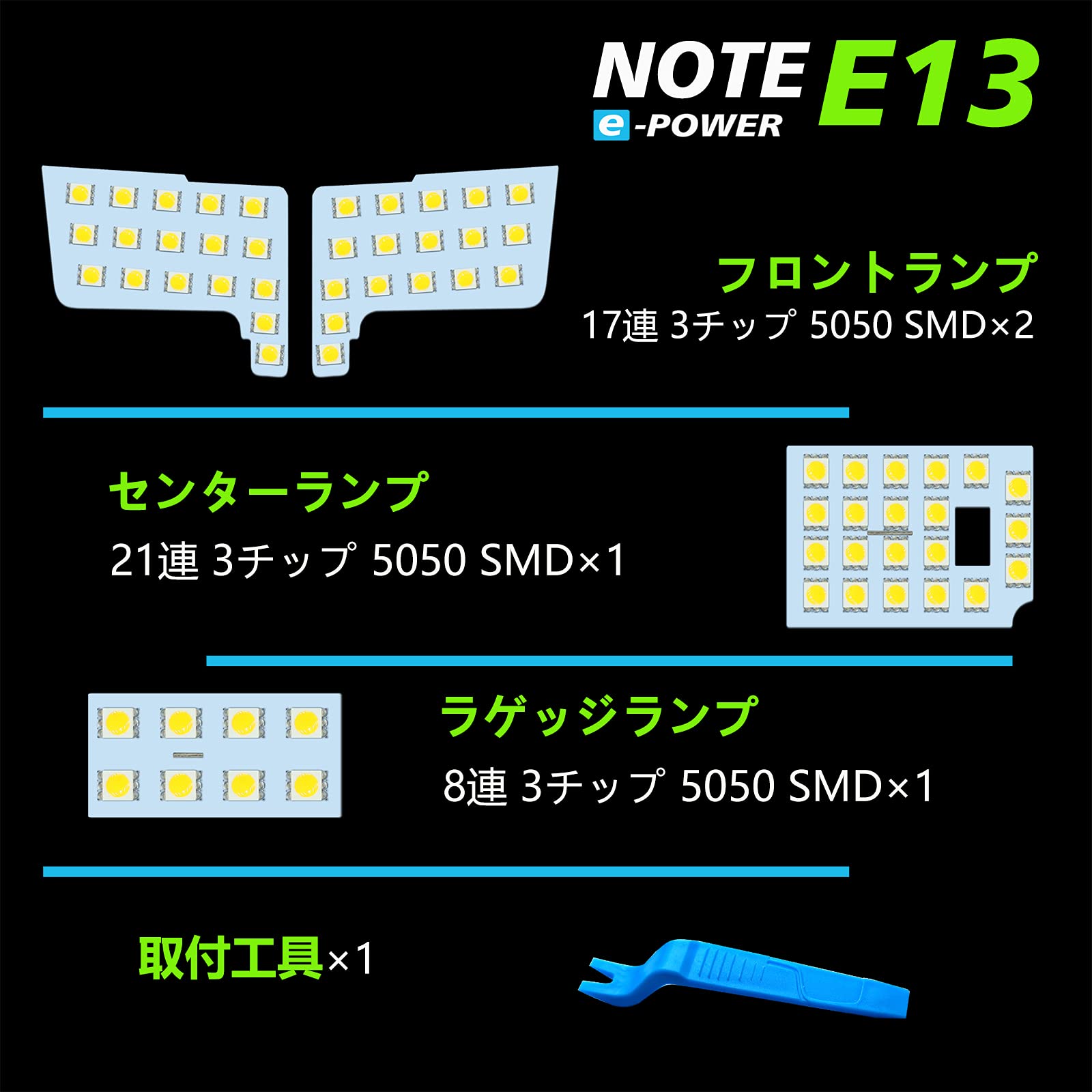 【在庫セール】ZXREEK 新型 ノート E13 LED ルームランプ セット 車種専用設計 日産 ノート NOTE E13 SNE13 R2.12~ LED 室内灯 純正交換 高輝度 6000K ホワイト 3 chips 5050 189 ? 全4点 取付工具付 取扱説明書 (ノートNOTE E13 用) | POPストア
