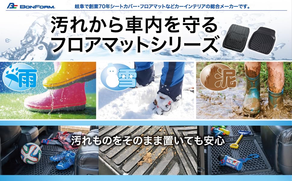 【使用上の注意】 ※各座席の足元に確実に収まるように取付けてください。特に運転席の足元はご使用方法によってはペダル操作に支障をきたす恐れがありとても危険です。 ※運転前にはマットが確実に取付けられていることをご確認ください。 ※運転中は絶対に敷き直さないでください。事故の危険があります。 ※火気を近づけないよう十分注意してください。 ※本品は樹脂製マット特有の臭いが多少あります。 ※本品の誤ったご使用方法により発生した事故等について、当社では一切の責任を負いかねますのでご了承ください。
