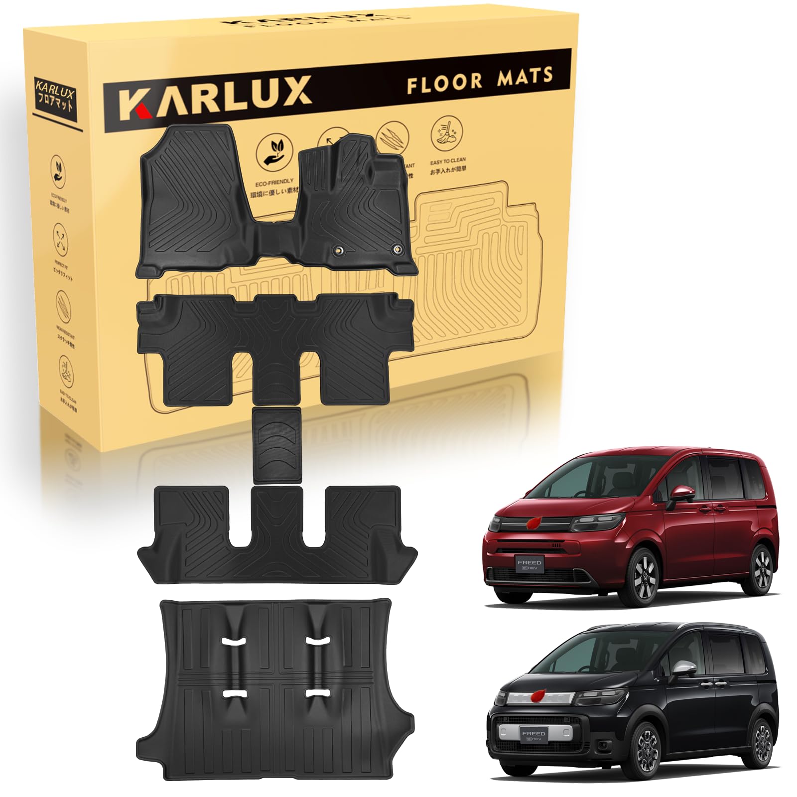 【2022最新】KARLUX ホンダ 新型 フリード GT系 ハイブリッド車用 フロアマット+ラゲッジマット 3Dカーマット、高級TPE素材、防水・防滑・防汚、柔らかく豪華、上品、取り付け簡単、耐久性、FRRED 2024年6月~現行専用フロアマット、ブラック (6人乗り用-1~3列目フロアマット+トランクマット.) | POPストア