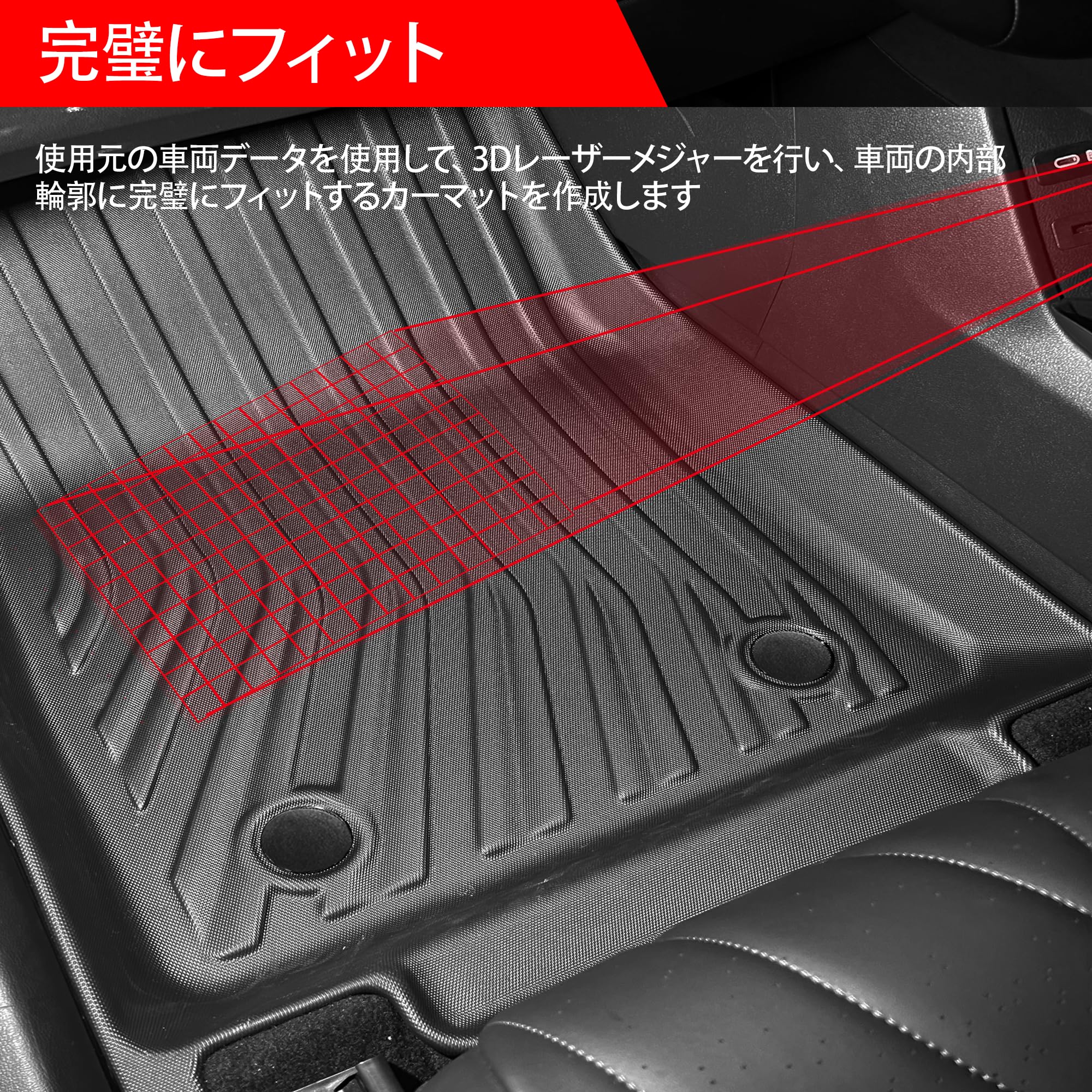 【3D立体構造で完璧にフィット】縁部分が壁のように高く立ち上がり、耐汚れ・防水性を実現。防水仕様で水にも強く、丸洗いができるので車内を清潔に保てます。車内を汚さずに運転したい方にはぴったりの3D立体車用フロアマットです。|
