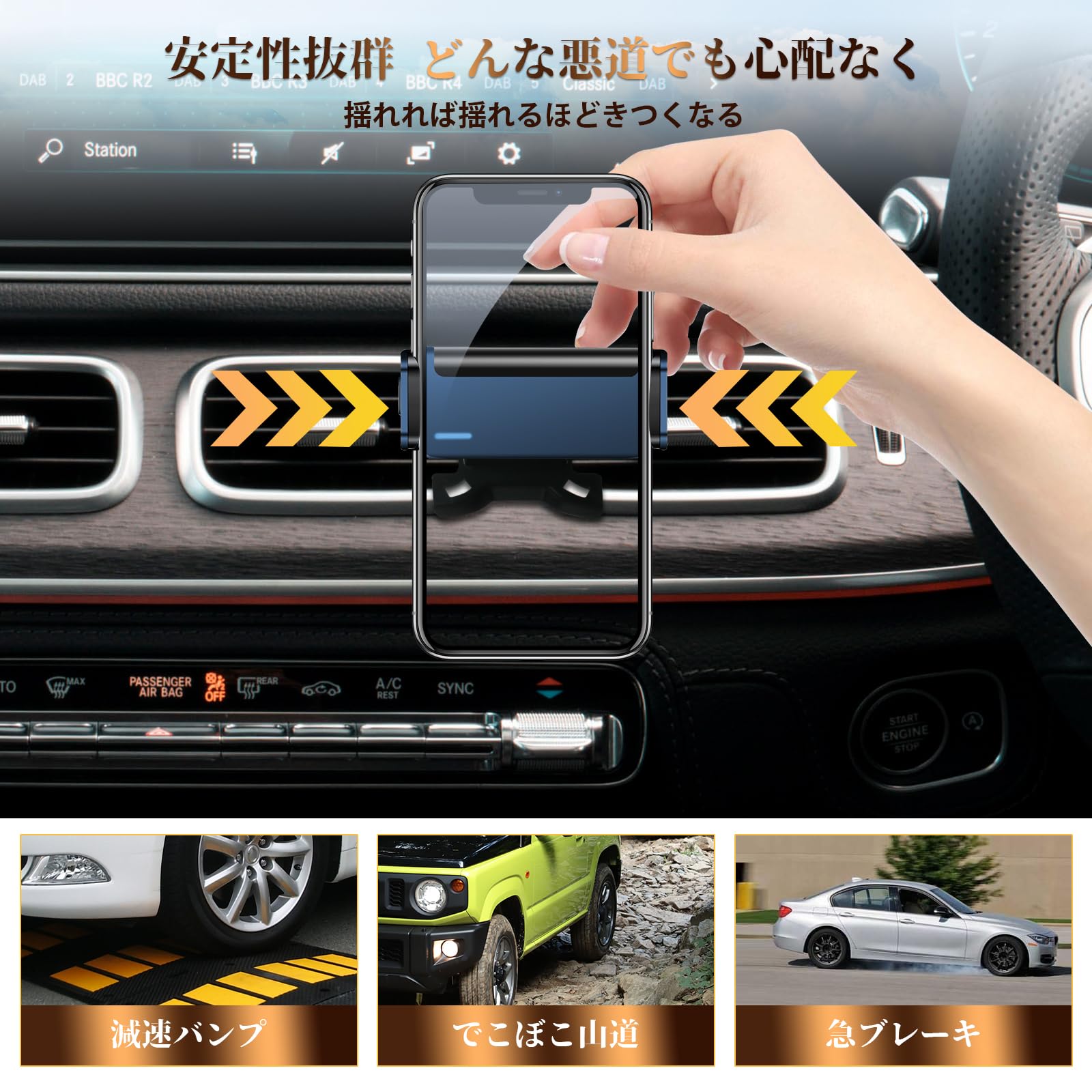 ??【エアコン吹き出し口式】設置位置はエアコン吹き出し口で、クリップ式のベースではありませんので、エアコンの部品を壊されません。さらに、インストールは簡単です。他社のスマホホルダーと比べて、サイズがもっとミニで精巧で、基盤が固いで、視界を妨げず、エアコンの性能に影響を与えません。