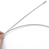 このフレックスタイプの配線ガイドは、ワイヤーが錆に強いステンレス製で作られています。そのため、長期間にわたって信頼性を保ちます。全長は約1.6mであり、ロッド線径は約3mmです。このサイズは、様々な場所での配線作業に適しています。