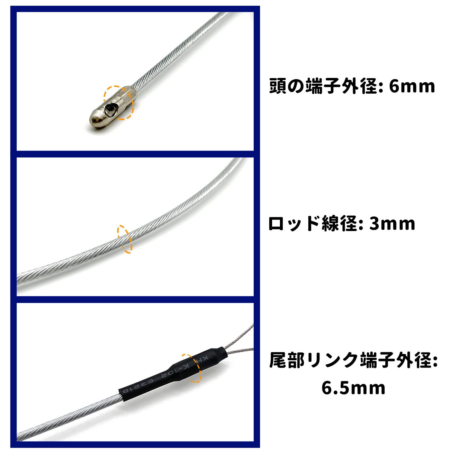 長さ約1.6m、ロッド線径約3mmで、さまざまな場所に対応しています。