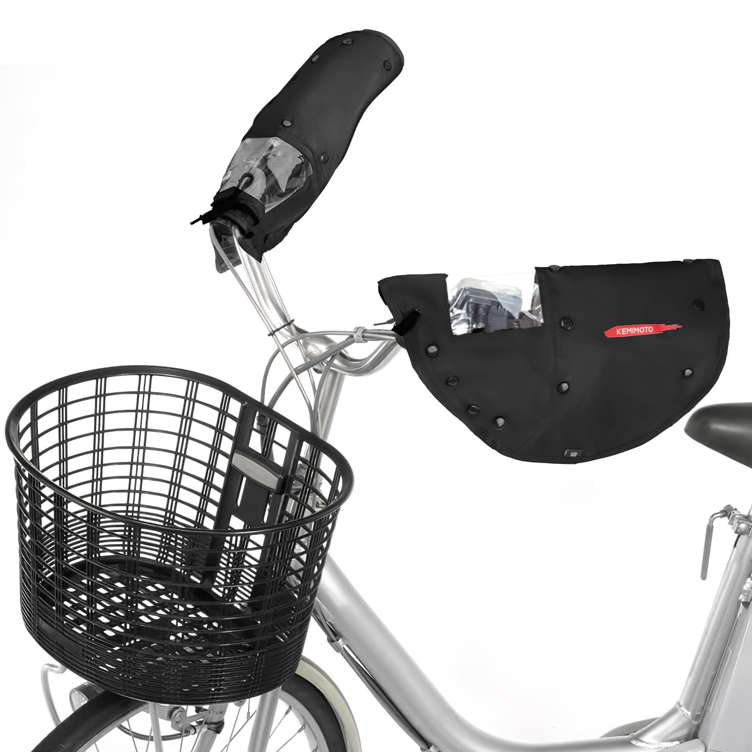 KEMIMOTO 自転車 ハンドルカバー ハンドル日除けカバー 日焼け防止 撥水 柔らかい 電動自転車 ママチャリ 通勤 通学 スーパー通う オールシーズン使える 内部ボア外せる 防水 防寒 (ブラック)