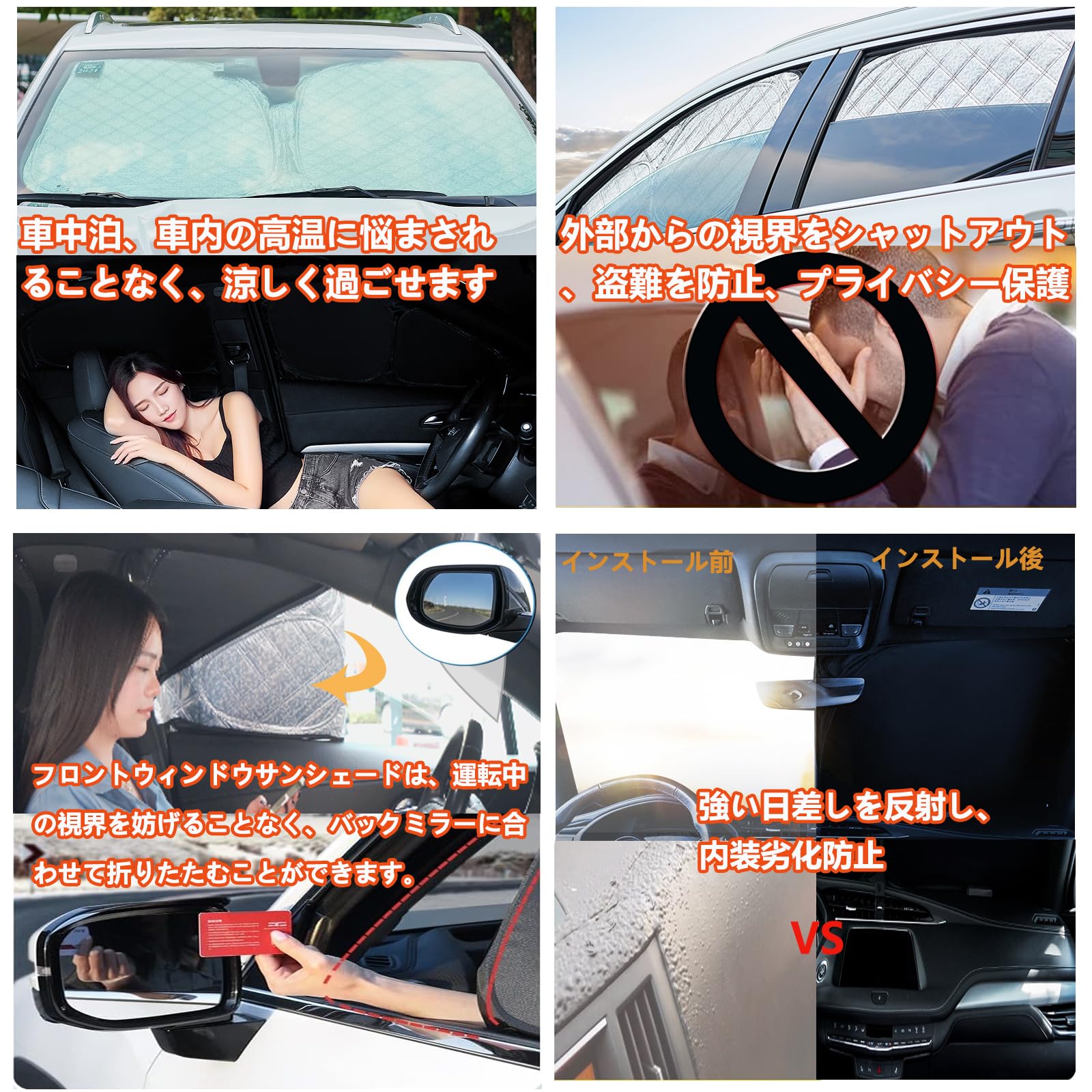 【オールラウンドな保護】 車の窓全体のサンシェード。車中泊、旅行やキャンプの際、サンシェードセットは優れたプライバシーを提供し、あなたやご家族が音楽、映画、ビデオゲーム、休息をより良く楽しむことができます。物色されないので盗難防止効果があります。