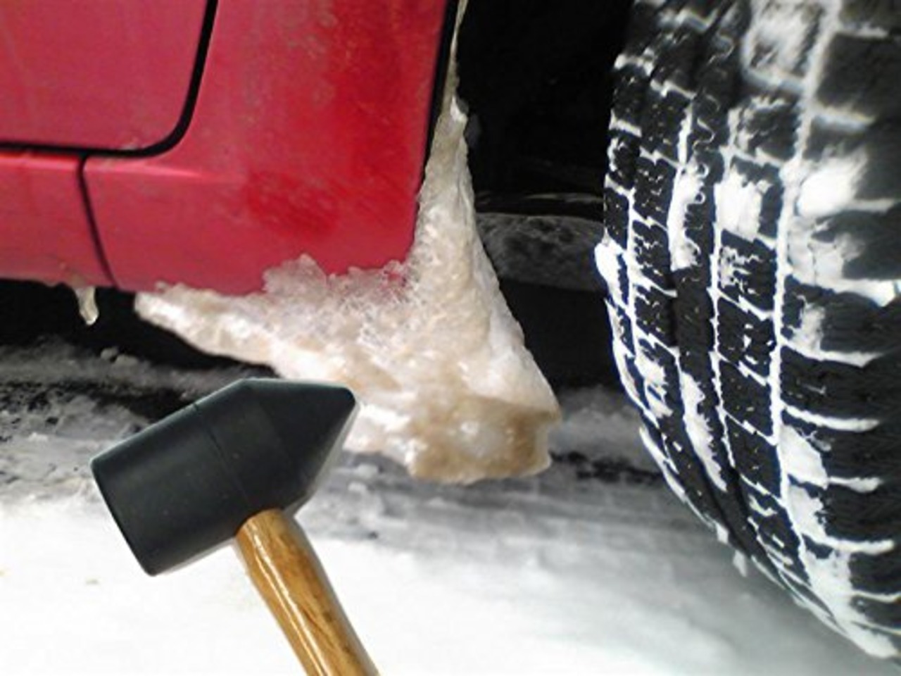 ●タイヤハウス内で凍りついた氷雪をたたいて落とせるゴム製ハンマーです。