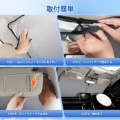 5.「装着&収納簡単」サンシェードを使う時サッと取り外し出来ます。吸盤を使わず、本体を広げて下部をフロントガラスに押し当て、サンバイザーを下げて挟むだけの簡単装着。使わない時は8の字に折りたたんでドアポケットでコンパクトに収納可能。(ご注意:折りたたむのにややコツが必要で、慣れるのに時間を要する場合がある点に留意しておきましょう。)