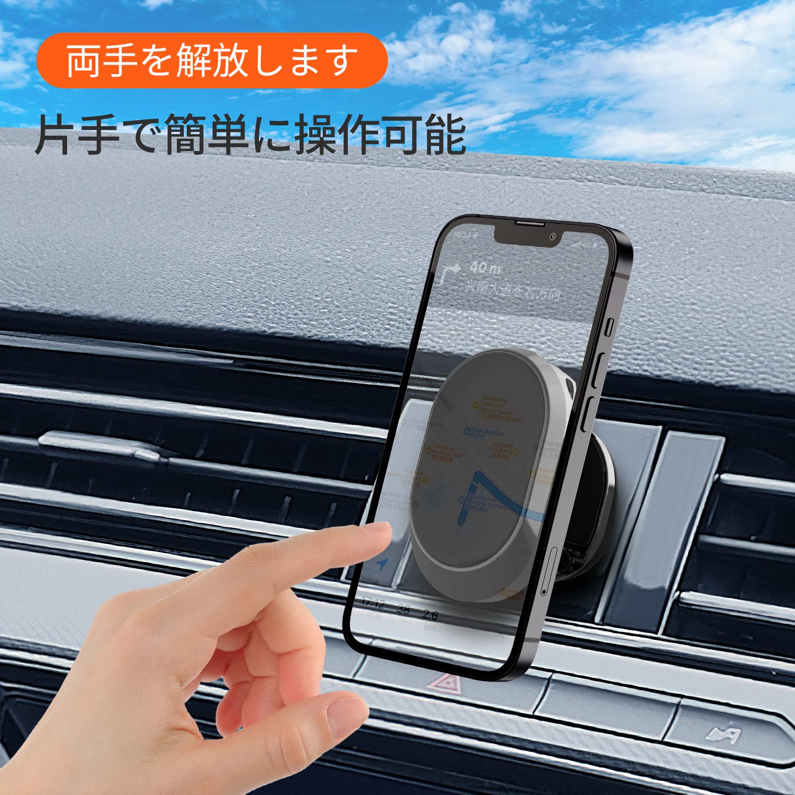 【安定安全】最新のスマホホルダーは高品質の合金材料と高性能の強力マグネットを使用し、安定で安心に使用可能。車が揺れても脱落しにくいです。閉回路磁場設計で、スマートフォンの電波に影響しません。車載ホルダーは高品質ナノメートルテープを使用し、耐高温の特徴があり、夏でも脱落しません。取り外しても車に傷を付けませんし、のりも残りません。