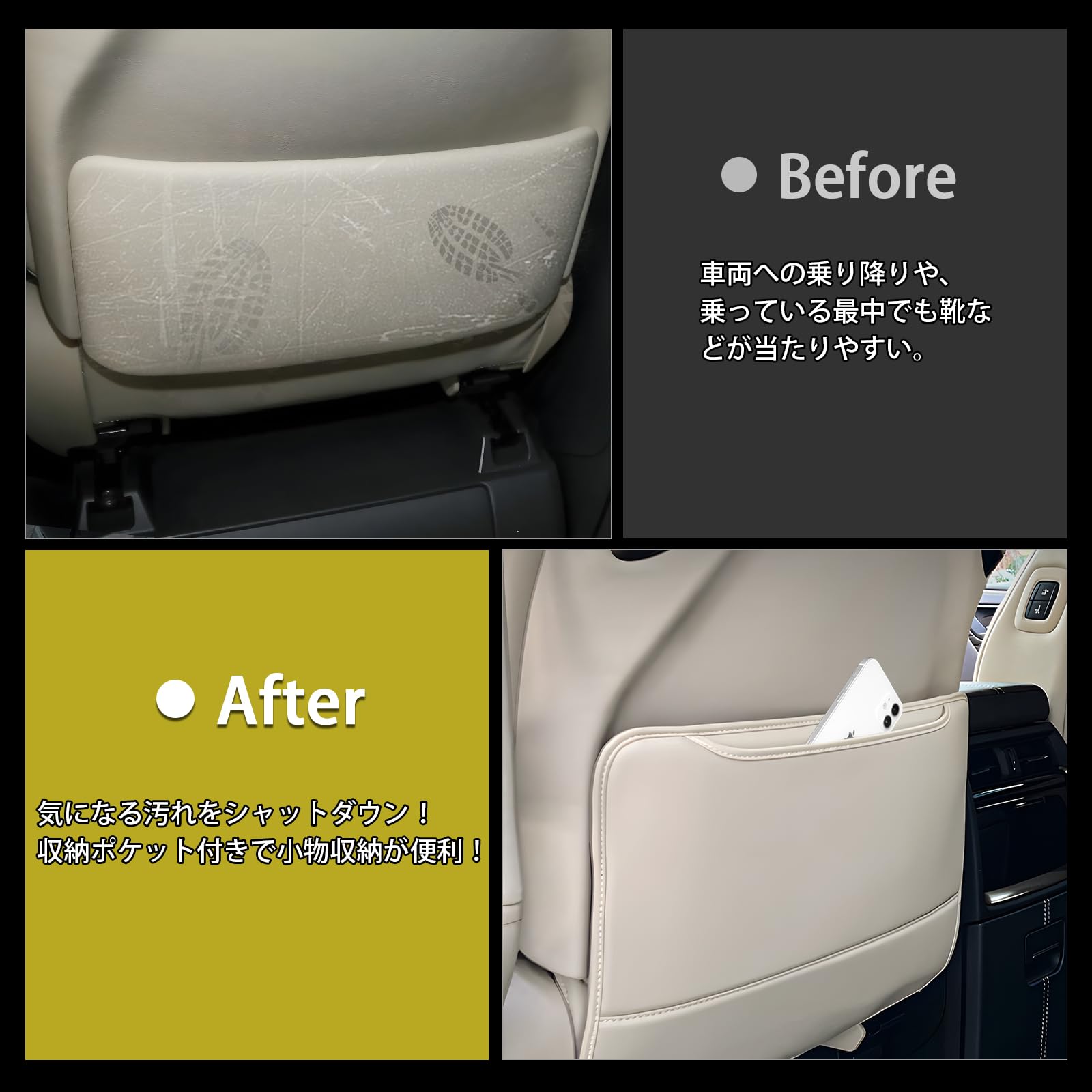 GIMUYA トヨタ 新型 アルファード 40系 ヴェルファイア キックガード 後部座席 シートバックカバー シートバックプロテクター ALPHARD VELLFIRE 40系 2023年~現行 専用 保護マット 収納ポケット付き 汚れ/傷防止 アクセサリー カスタムパーツ マイクロファイバー ベージュ 2Pセット