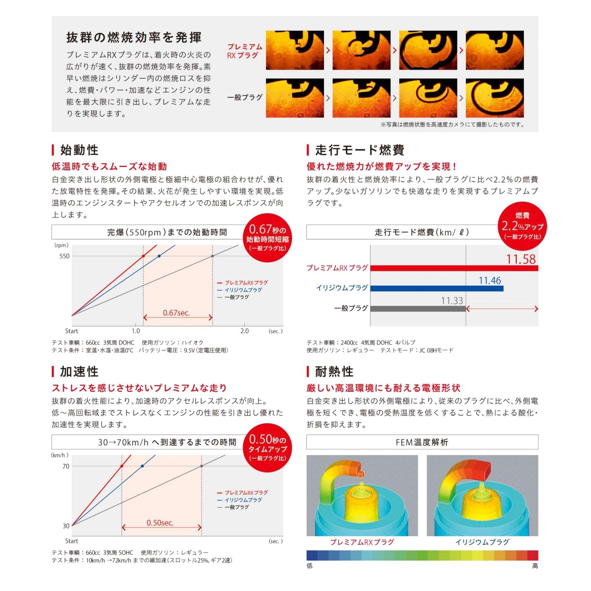 ●プレミアムRXプラグは、着火時の火炎の広がりが速く、抜群の燃焼効率を発揮。