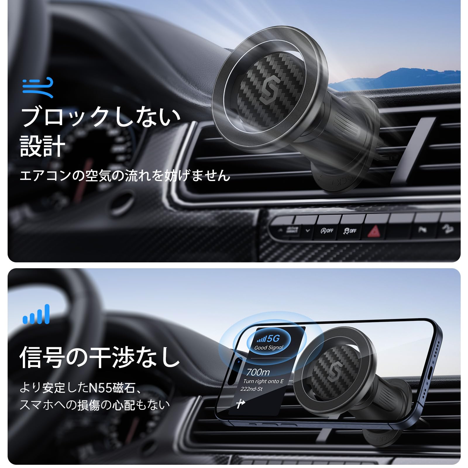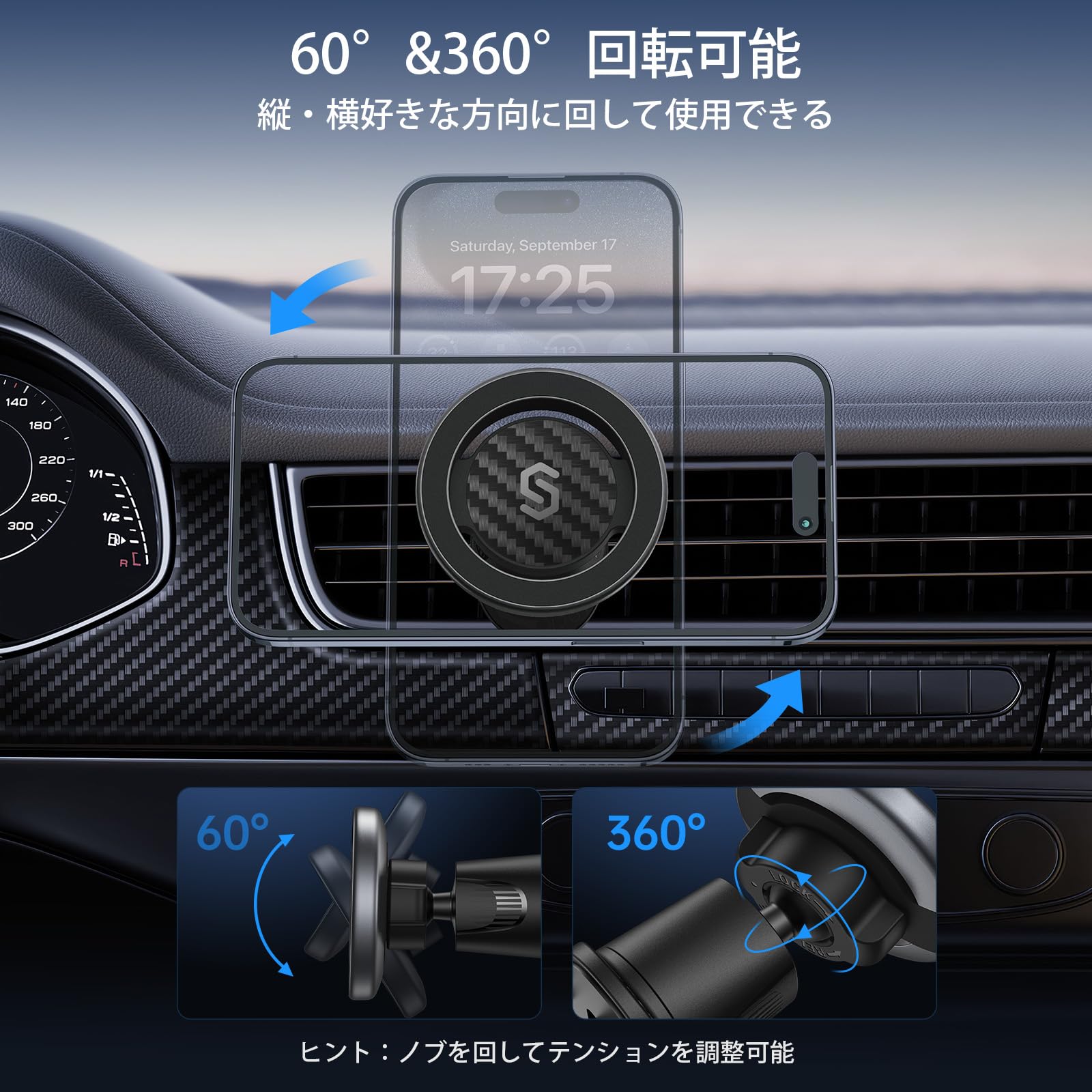 【数量限定】スマホホルダー 車 MagSafe対応 Syncwire【強化金属フック】MagSafe車載 エアコン吹き出し口用 マグネット 車載スマホホルダー 車スマホスタンド 落下防止 360度回転 iPhone 16 15 14 13 12 SE Samsung Xperia など全種類スマホに対応 (炭素繊維色) | POPストア