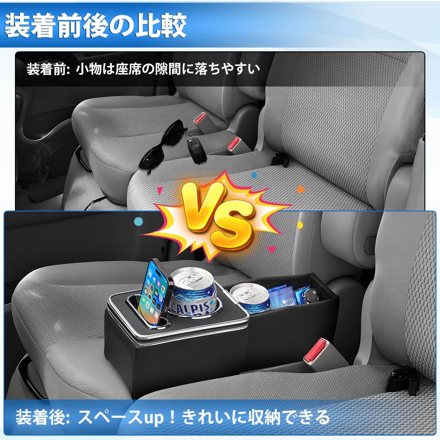 4.【取り付けカンタン】最初にシートベルトの位置から挿入する必要があります。運転席と助手席の間に置くで取付完了!純正のアームレストにも干渉無し、そのまま使用いただけます。