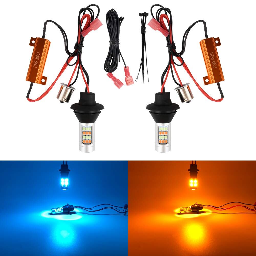 『商品仕様』口金タイプ:S25 シングル 1156 BAU15S PY21W ピン角違い150度 / 発光色:アンバー&アイスブルー / LEDチップ:2835SMD / LEDチップ数:42連 / 入力電圧:DC12V / 消費電力:(ポジション)0.228A×12V=2.736W、(ウインカー)2.14A×12V=25.68W / 保証:100日保証。