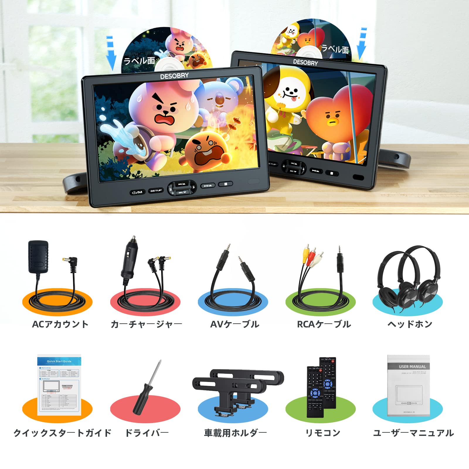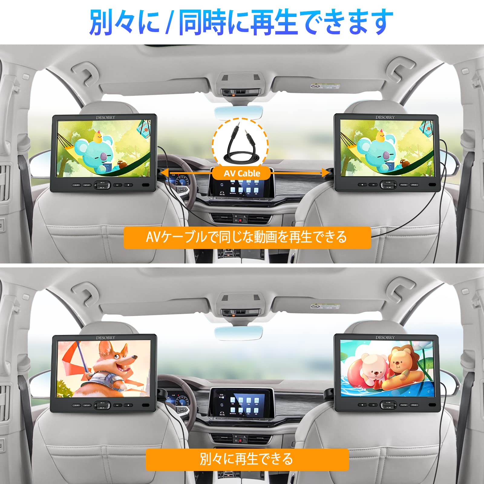 【在庫処分】DESOBRY ヘッドレストモニター 【2台セット】 10.1インチ スロットイン式 車載モニター 1080P対応 車載dvdプレーヤー レジューム機能 CPRM リージョンフリー HDMI入力/USB/SDカード/AV出力/AV入力対応 | POPストア