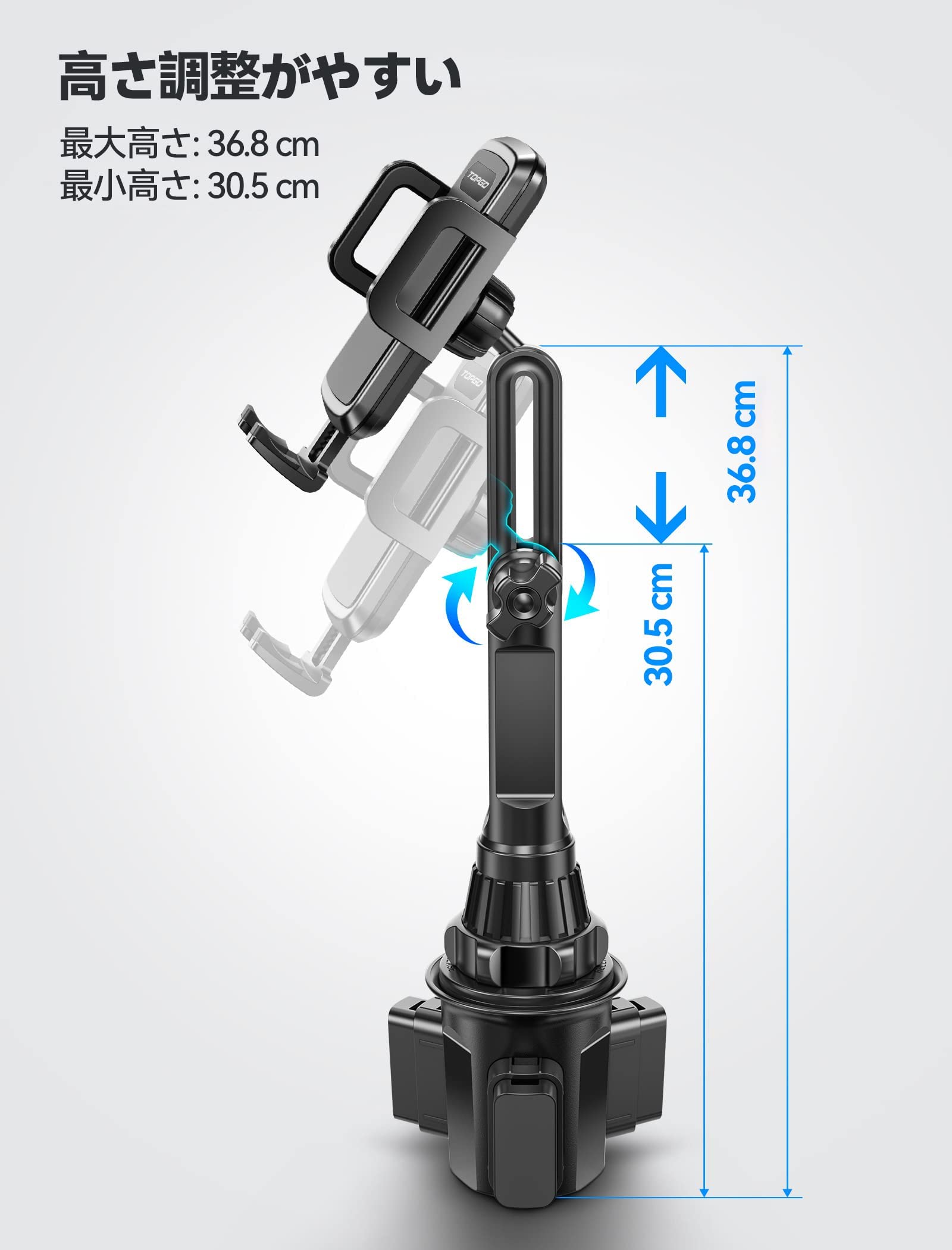 TOPGO スマホホルダー 車 ドリンクホルダー 車載ホルダー カップホルダー スマホスタンド 車 【 機械式伸縮延長ポール 車載 携帯ホルダー 縦・横・上下・左右自在調節 iPhone 14 Pro Max/Galaxy S23 Ultra 多機種対応(ブラック)