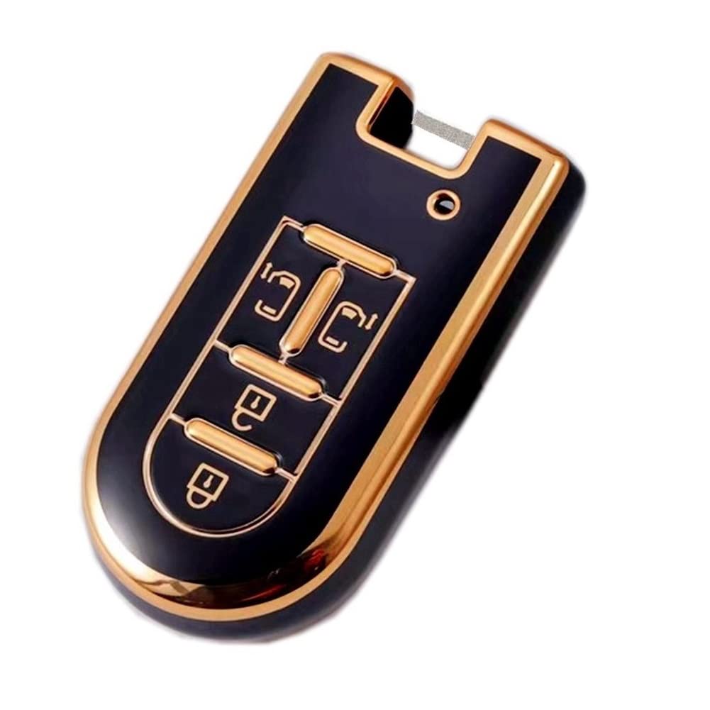 [YANMW] キーケース適合トヨタダイハツ タンク ルーミー キー カバー タント タントカスタム ウェイク 新型ムーヴ キャンバス ムーヴカスタム スマートキーケース キラキラ (4ボタン、ゴールドブラック)
