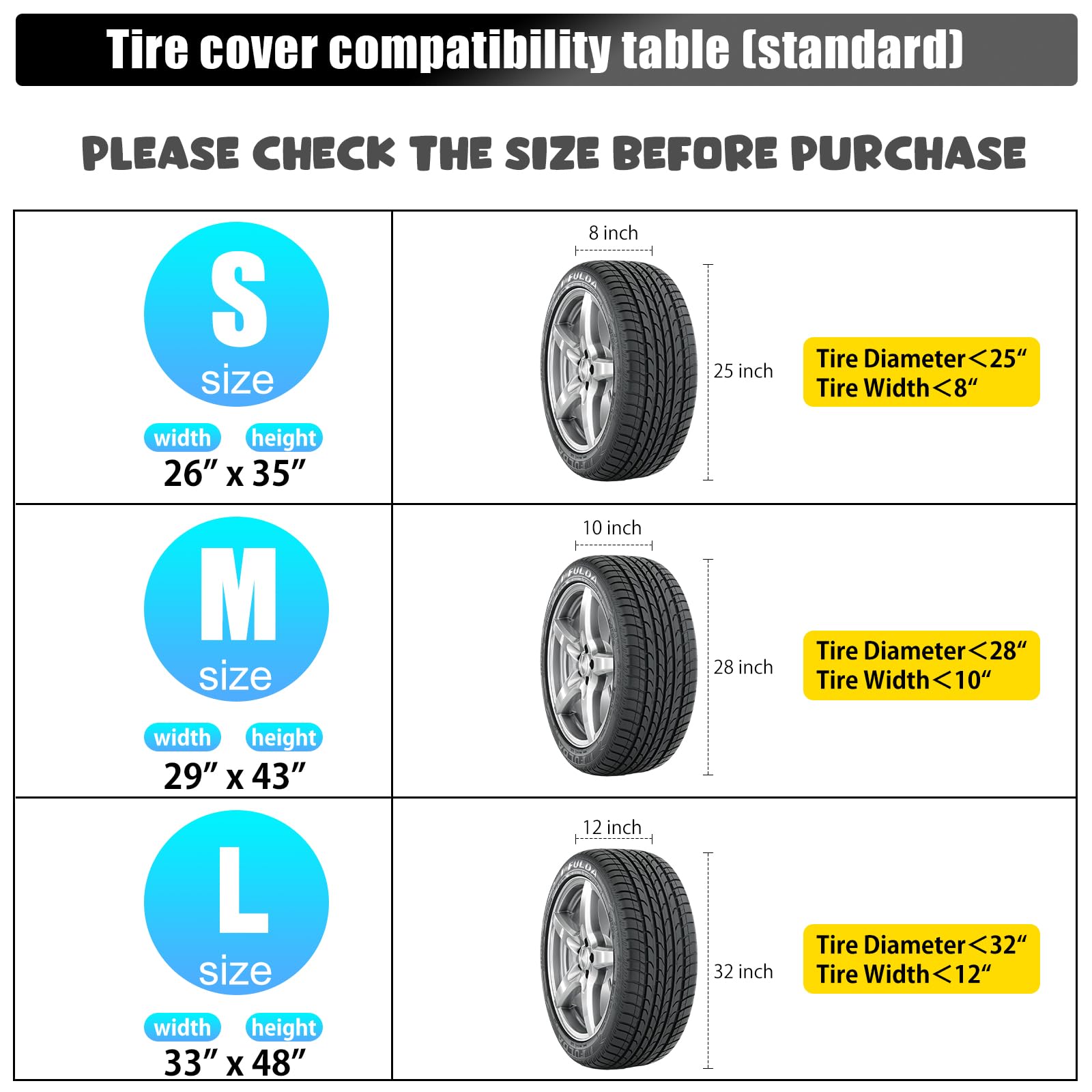 Rosefray タイヤカバー 屋外 フェルトパッド4枚付き 防水 頑丈で引き裂き抵抗 4本タイヤ保管 420D 幅65*高さ90cm 軽自動車用(12/13/14/15インチ)ブラック