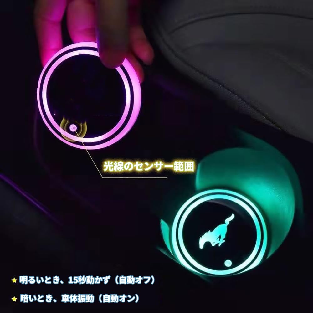 【新春セール】トヨタ RAV4 ドリンクホルダー LEDコースター カップホルダー LEDカーウォーターカップホルダー 光る LEDコースター 明るさセンサー 自動点灯消灯 イルミネーション 車内 車載 車用 丸型 ドリンクホルダー カップホルダー ボトルコースター ライトパッド マット 2個セット (RAV4) | POPストア