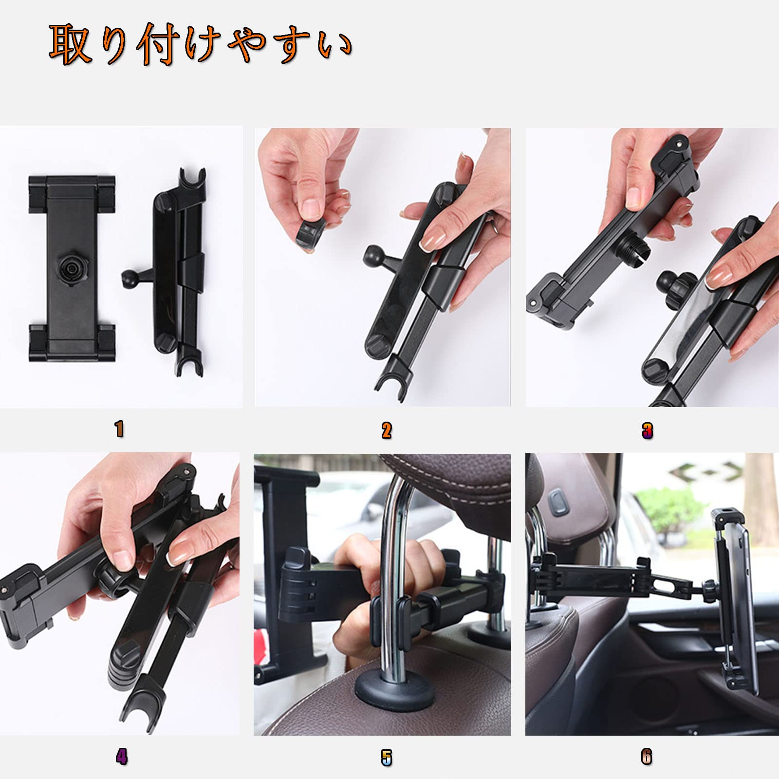 【広い機種対応】タブレット 車載ホルダー 後部座席用5.5-11インチのNintendo Switch/iPad 2/3/4/iPad mini/iPad air/ iPhone/Samsung/Galaxy Tab/Google Nexusn対応。旅行中、渋滞中、車が嫌い子供と年寄りにとって助けています。スマホ/タブレットで音楽、映画やカラオケなどを楽しみて疲れる時間を楽に過ごすことができます。