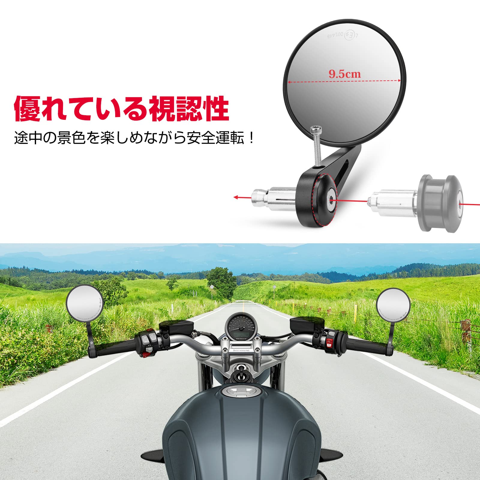 KEMIMOTO バーエンドミラー オートバイミラー バイク用 ミラー CNC加工 汎用ミラー ブラック 左右セット 車検対応 凸面鏡 (丸型)