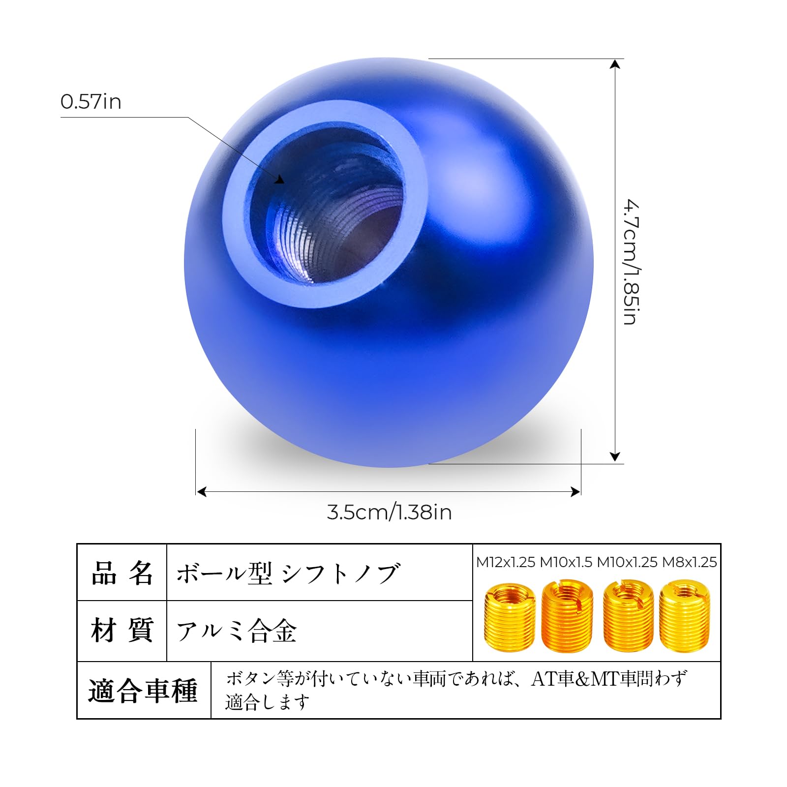 YESHMA 汎用 シフトノブ ボール ギアノブ MT車 AT車 シフトレバー ボール型 丸 直径47㎜ 4つ アダプター付き M12x1.25 M10x1.5 M10x1.25 M8x1.25 ギアノブ アルミ合金製 青