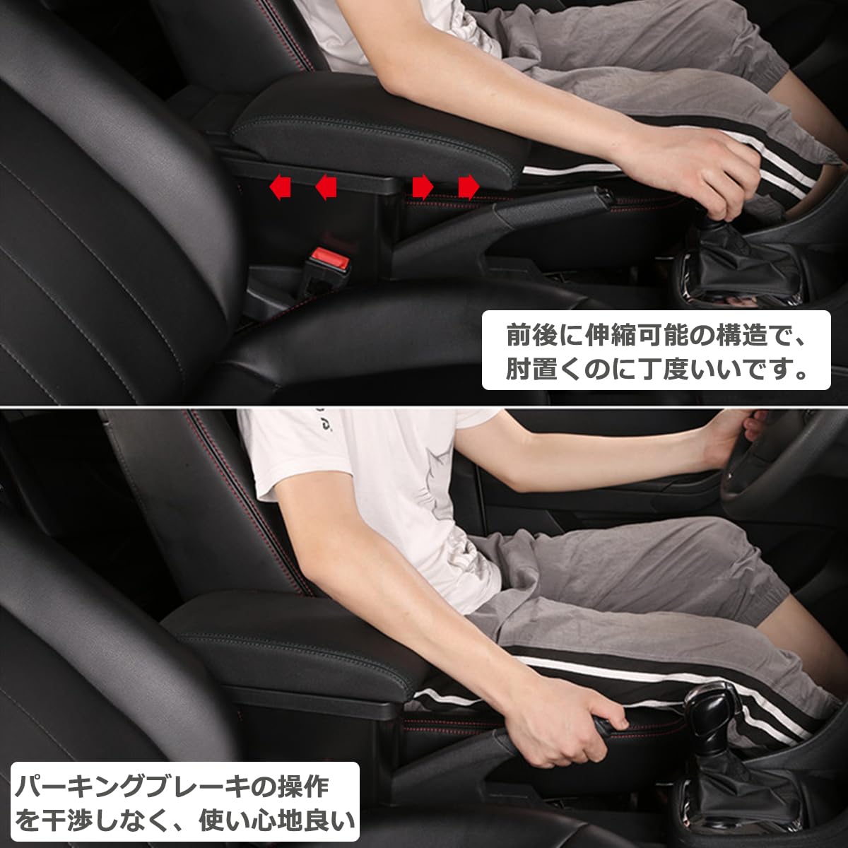 【コンソールボックスタイプ】ボックス型のタイプで中に大きな収納スペースがあり、2段に分かれて収納でき、傘、工具、スマホ、モバイルバッテリなどしっかり収納できます。また、肘掛けは前後に1段階だけ位置を調整できるため、自分にあった位置に変更も可能です。アームレストとして、特に長距離移動する方へおすすめです。