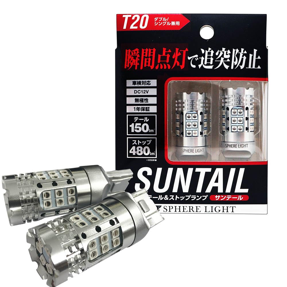 【新着商品】スフィアライト T20 LED バルブ テール ストップ ランプ サンテール レッド 480lm 12V 2本入 車検対応 無極性 ダブル シングル 対応 ウェッジ ブレーキ SPHERELIGHT STLWT20R