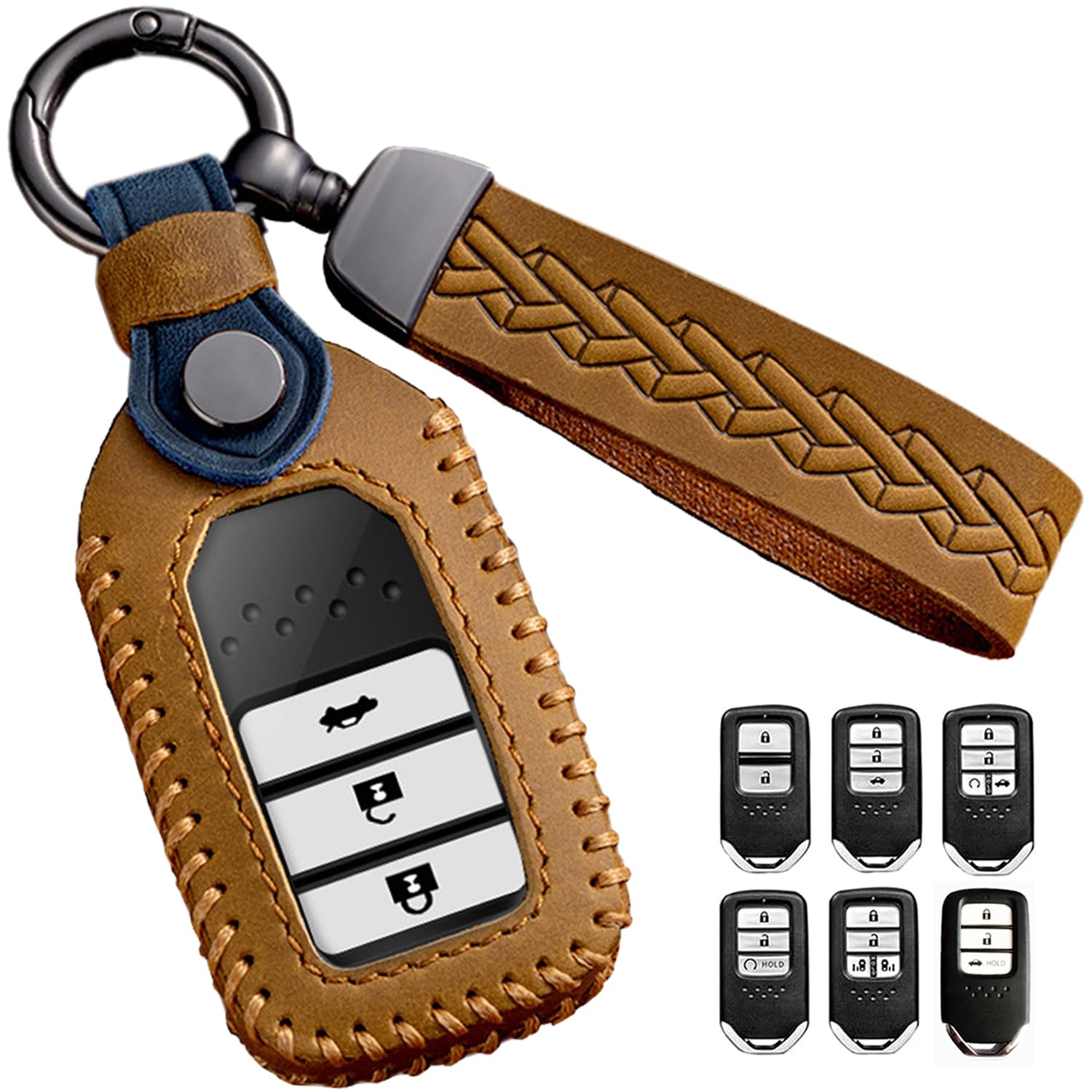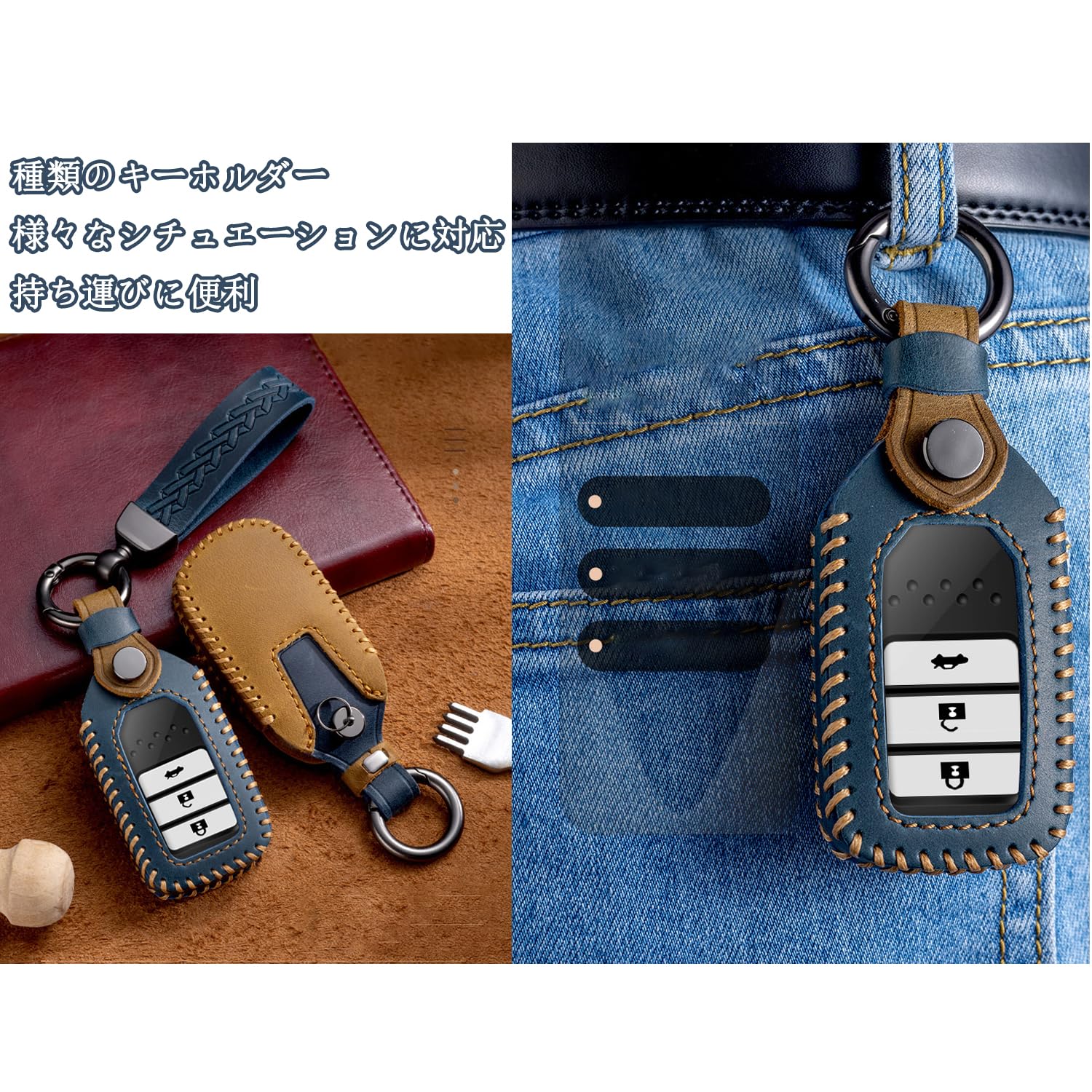 【上質素材/落下防止】新型ホンダ上質の革キーケース,耐摩耗性、耐久性に優れ、本革の外側、落下防止効果が得られます、鍵の傷や汚れを防ぐことができます、スマートキーをフルカバーするプロテクション。