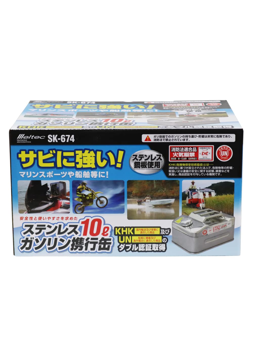 【2022最新】メルテック(meltec) ガソリン携行缶 10L 消防法適合品 KHK UN [ステンレス] 鋼鈑厚み:0.8mm Meltec SK-674