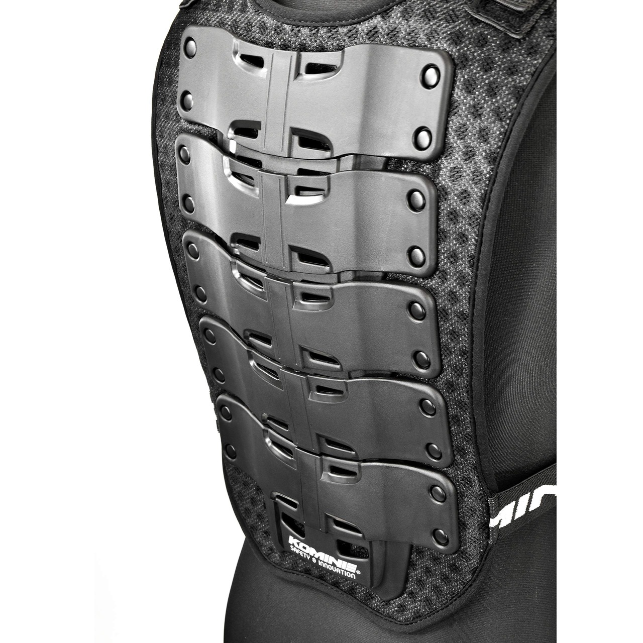 体の動きにしっかり追従するプラスチックシェルを採用したバックプロテクターに加えた