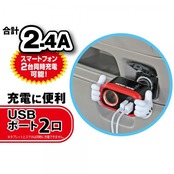 ●自動車用USB電源で,2.4A出力USB充電ポートを2口搭載(5V/1口最大2.4A)