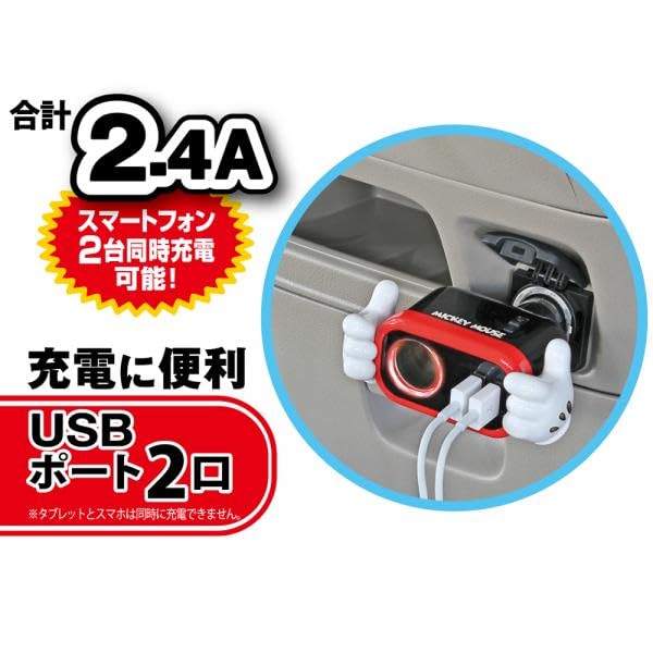 【数量限定】ナポレックス(Napolex) 車用シガーソケット USB端子2口 USB2 4A 12V車専用ヒューズ付10A(30mm) 通電モニター付 タブレット スマホ同時充電可 カー用品 ディズニー ミッキーマウス WD-323 | POPストア