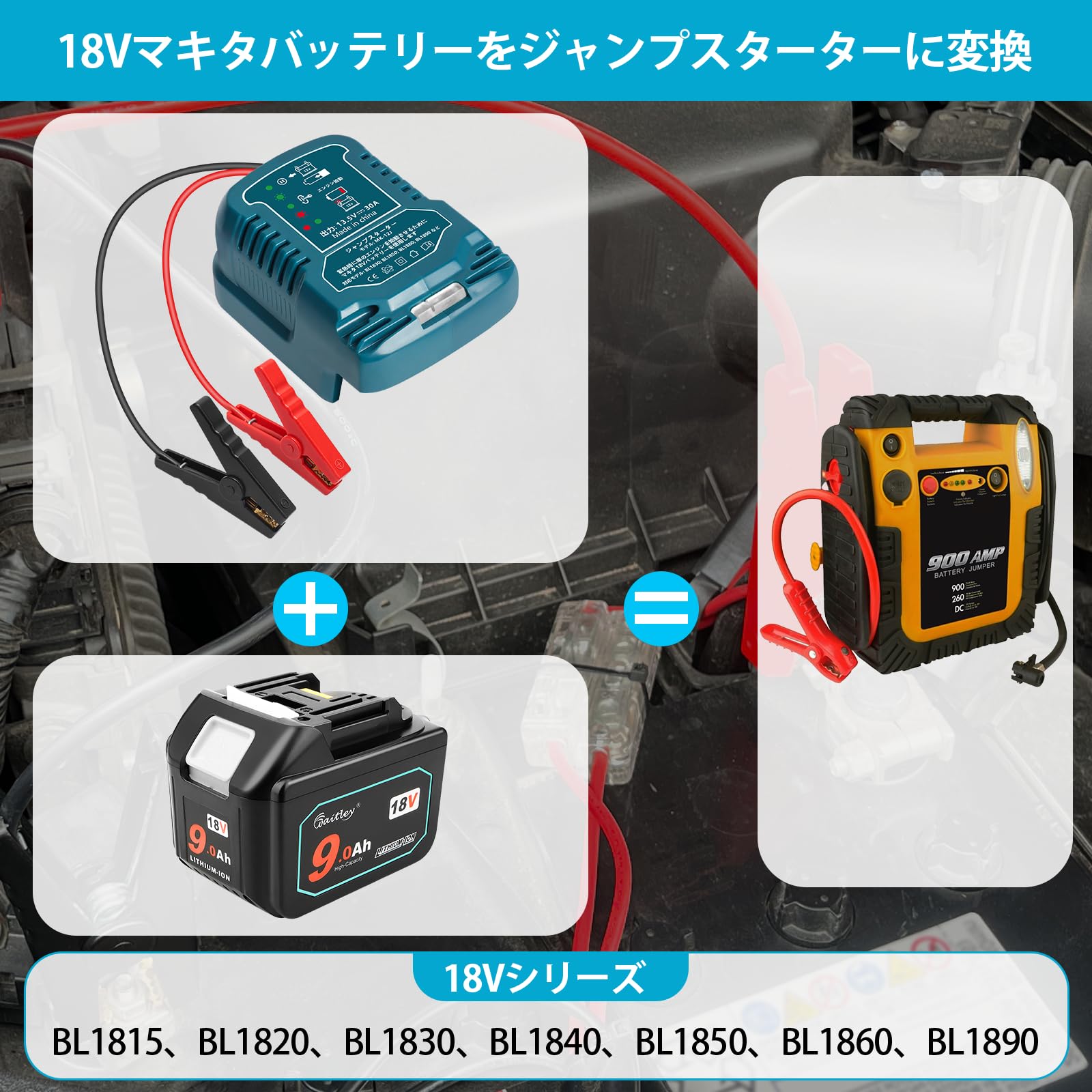 Waitley 緊急用ジャンプスターター マキタ 18V バッテリーに対応 ジャンプケーブル ジャンパースターター 車用エンジンスターター ジャンプスタート