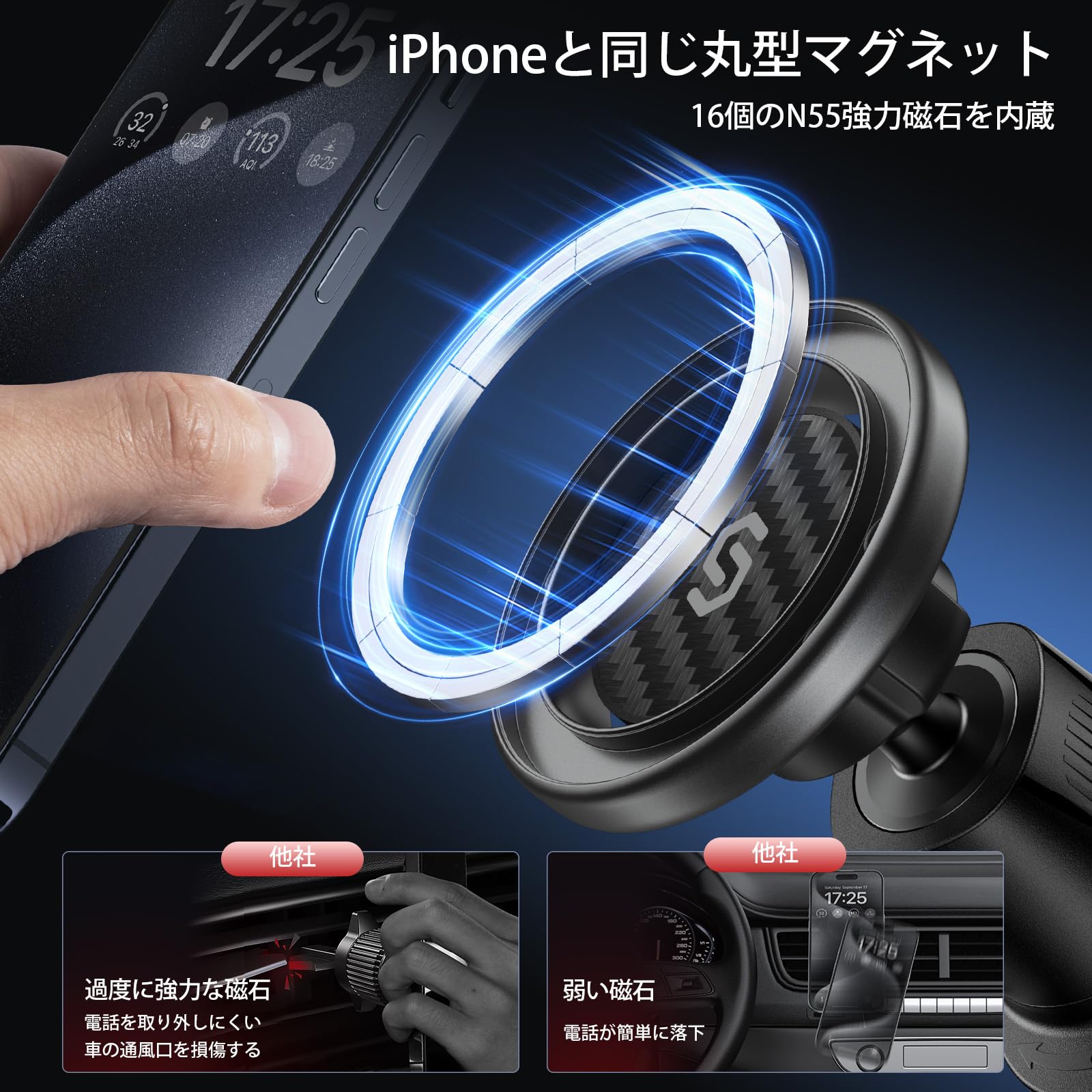 【数量限定】スマホホルダー 車 MagSafe対応 Syncwire【強化金属フック】MagSafe車載 エアコン吹き出し口用 マグネット 車載スマホホルダー 車スマホスタンド 落下防止 360度回転 iPhone 16 15 14 13 12 SE Samsung Xperia など全種類スマホに対応 (炭素繊維色) | POPストア