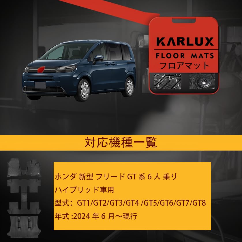 【対応車種】ホンダ 新型 フリード GT系 GT1/GT2/GT3/GT4 /GT5/GT6/GT7/GT8。6人乗り用,ハイブリッド車用 ,年式:2024年6月-現行。【セット内容】一列目用1P、 二列目用1P、三列目用2P、 ラゲッジマット1P。購入前に車の形状、年式、モデルを確認するようお願いします。