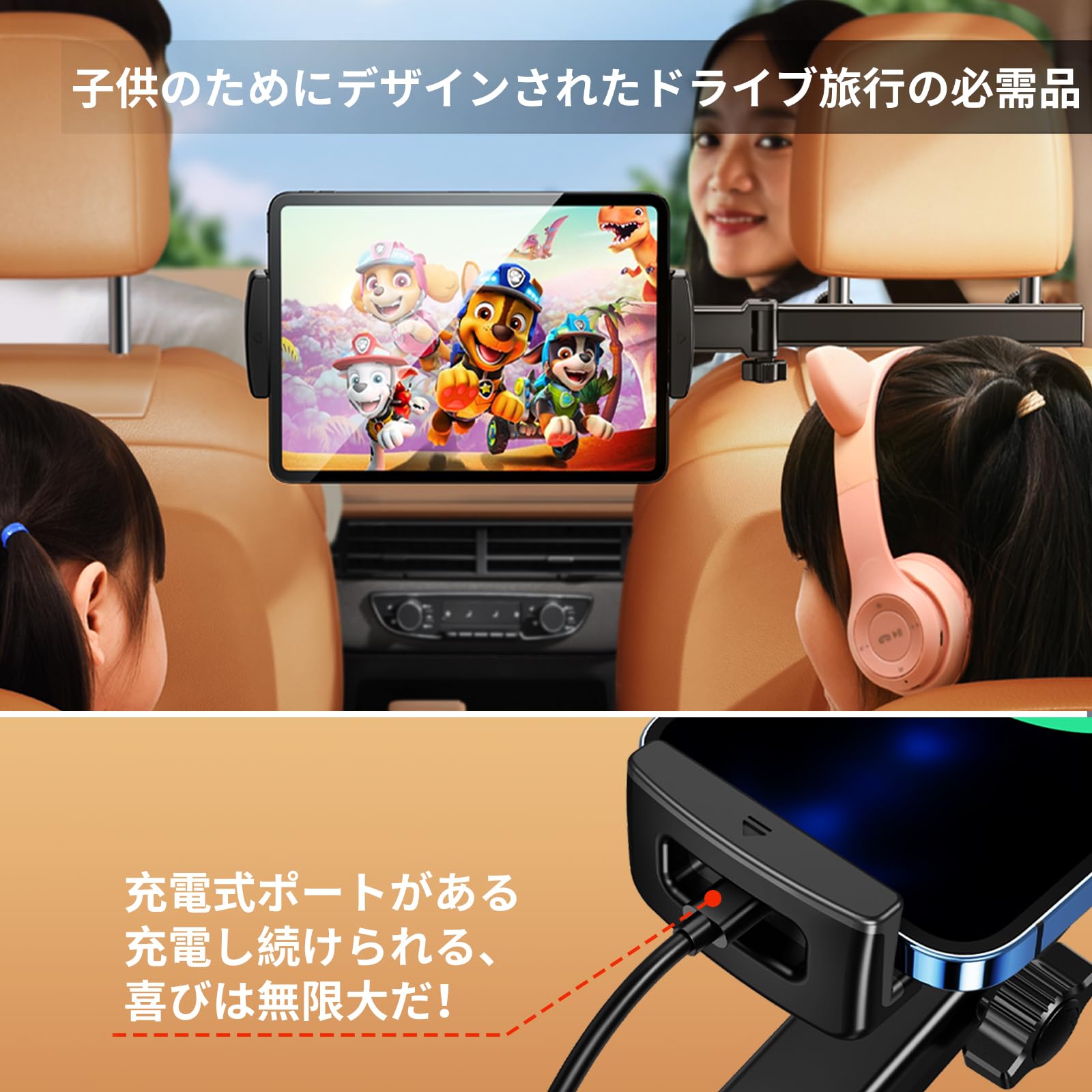 【子供用ロードトリップの必需品 】ヘッドレスト用タブレットホルダーはお子様や後部座席の乗客が長い車の旅中にドラマを見たり、読書したり、ゲームをしたりすることができ、とても楽しく、泣くのを防ぎます。 そして、運転するのが面倒です。 予約された充電ポートで設計されており、携帯電話/タブレットで同時に充電と遊びができます。 継続的なパワーと無限の幸せ。