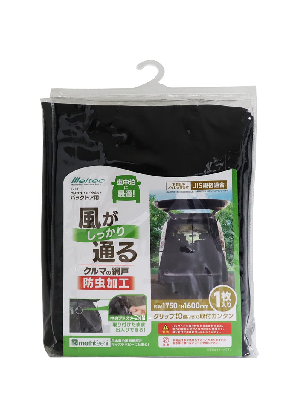 メルテック(meltec) 車用 虫除けウィンドウネット バックドア用 高性能防虫加工タイプ 175(W)×160(H)cm 1枚入り 中央ファスナー付 JIS規格適合品L-13