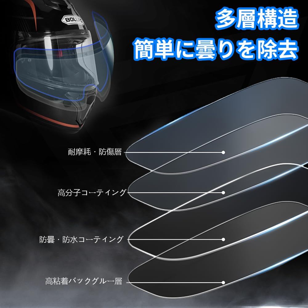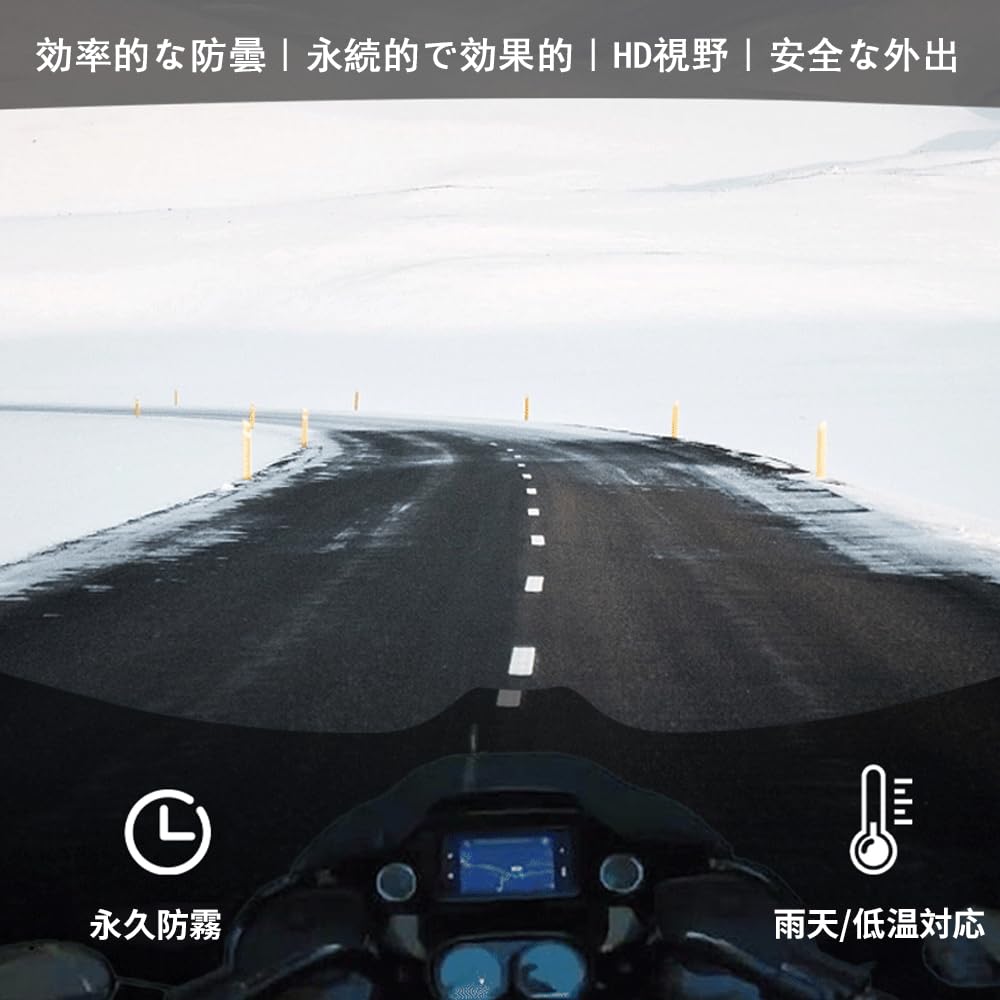 高効率の防曇性能:寒冷な冬や湿気の多い春秋の朝でも、この防曇フィルムは風防ガラスの曇りを効果的に防止し、常にクリアな視界を確保します。フルフェイスヘルメット、ジェットヘルメット、ハーフヘルメットに対応しており、すべてのライダーに必須のアクセサリーです。