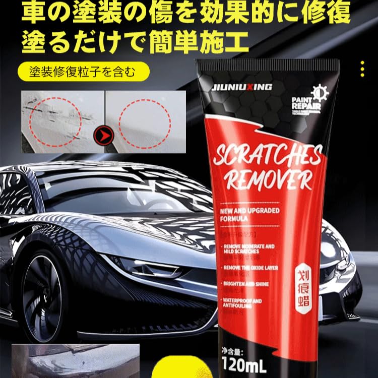 【車ケア補修ペースト】車きず消し 120ml 車の傷修理研磨ワックスクリーム カースクラッチ修復 塗装表面 カーキズ消し ペイントスクラッチリムーバー 傷防止保護 車の傷を瞬時に消去 塗装傷補修用スクラッチリムーバーコンパウンド