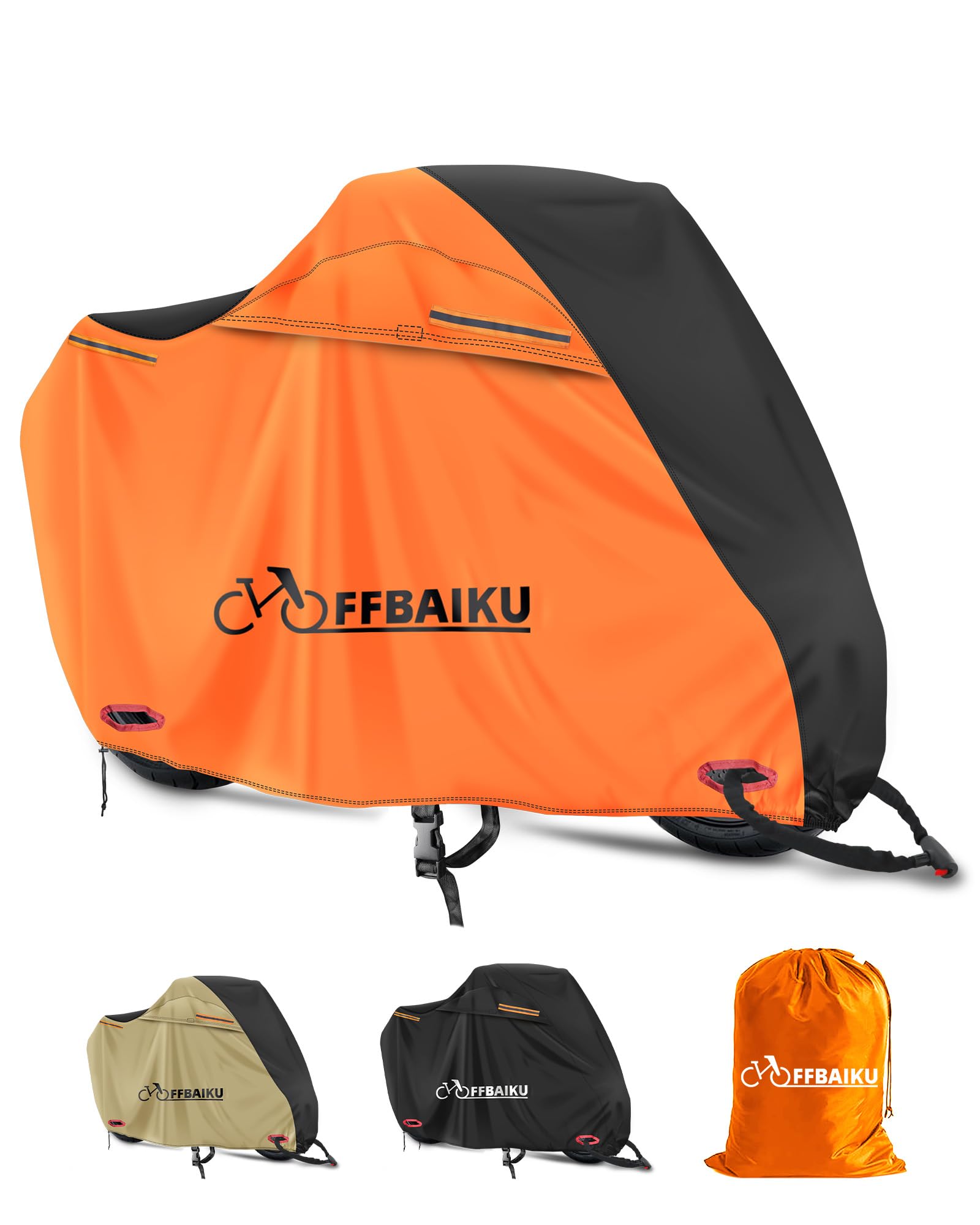 OFFBAIKU バイクカバー厚手【多色選び】大型車体カバー 防水 二重縫製 破れにくい 撥水加工 耐熱 紫外線防止 バックル2つ・裾めくれ防止 収納袋付き 盗難防止 汎用型 (オレンジ色 3XL)