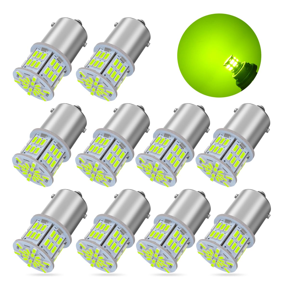 【2022最新】【24V車専用】S25 LEDシングル レモングリーン 爆光 10個 G18 BA15s P21W 54連 3014SMD トラック/ダンプ/バス 大型車用 バルブ バックランプ/サイドマーカー球/ナンバー灯/ドアランプ/フォグランプ など 高輝度 汎用 (10個セット) | POPストア
