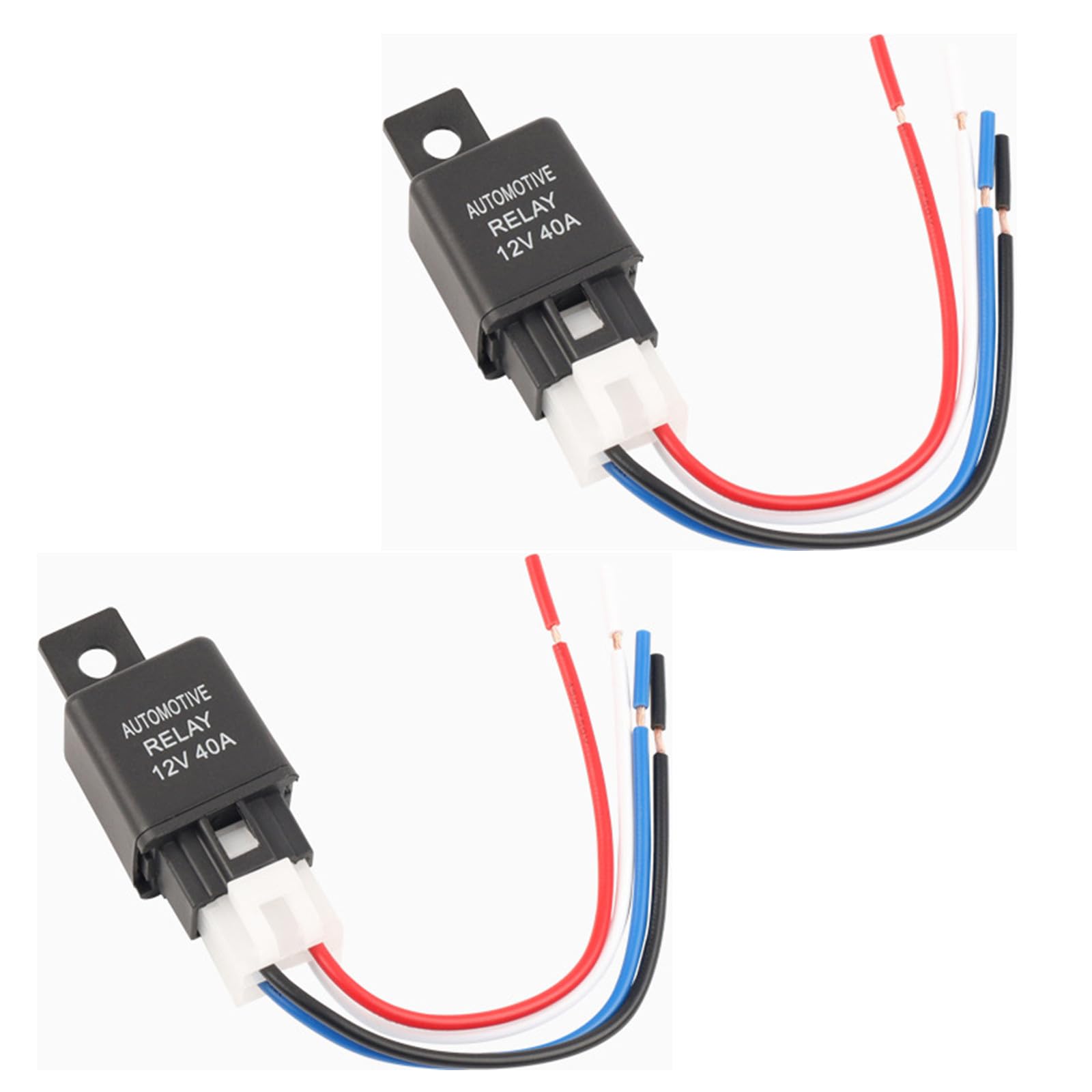 リレー 2点セット 12V 40A 4極リレー 車用リレー ソケットおよびハーネス付き 高温耐性 難燃性 自動車用エアコンコンプレッサー用