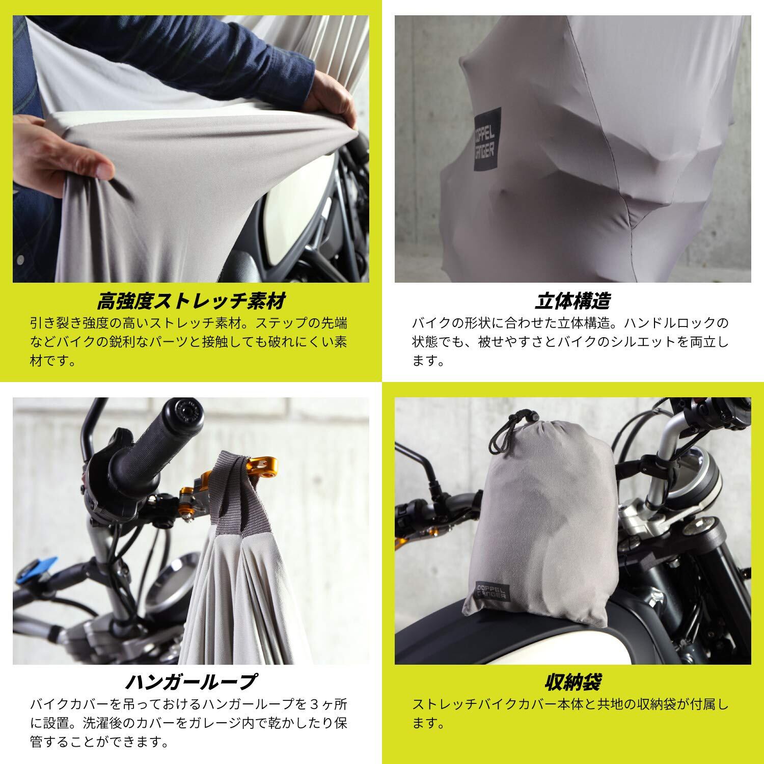 【2022最新】DOPPELGANGER(ドッペルギャンガー) ストレッチバイクカバー2 【伸びるバイク用インナーカバー】 起毛ストレッチ素材 小キズ防止 被せるメンテナンスグッズ 収納バッグ付属 DCC533-GY グレー W166 ×L(D)50× H110cm(平置寸法)
