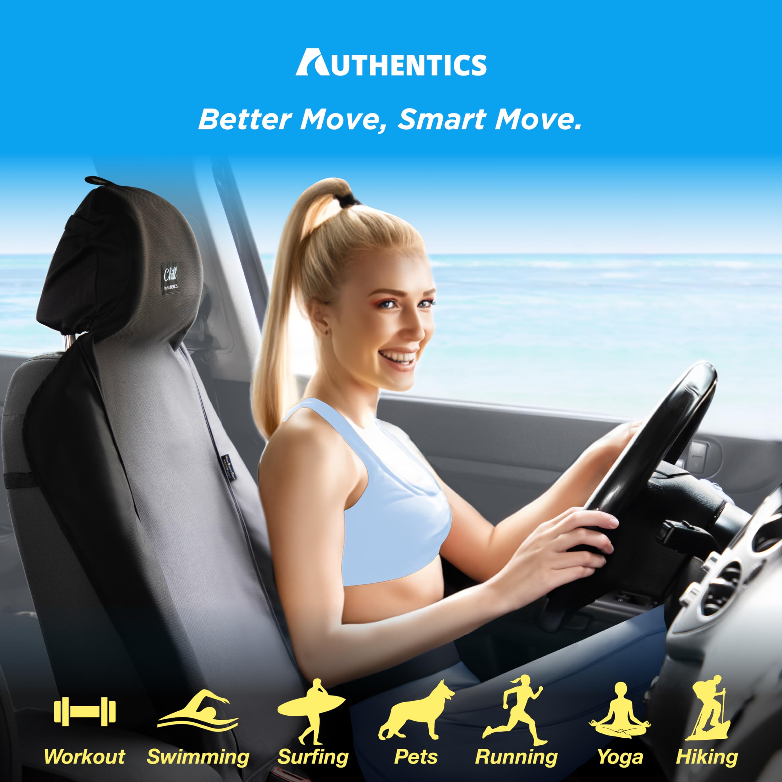 【特価商品】AUTHENTICS Chill カーシートカバー 汎用 軽/自動車/普通車対応 洗える - 柔らかく快適で、防水 吸汗 抗菌 消臭、取付簡単のシートエプロン、台湾製の機能性生地、化学製品の臭いがしない、ネックピローとして収納可能 | POPストア