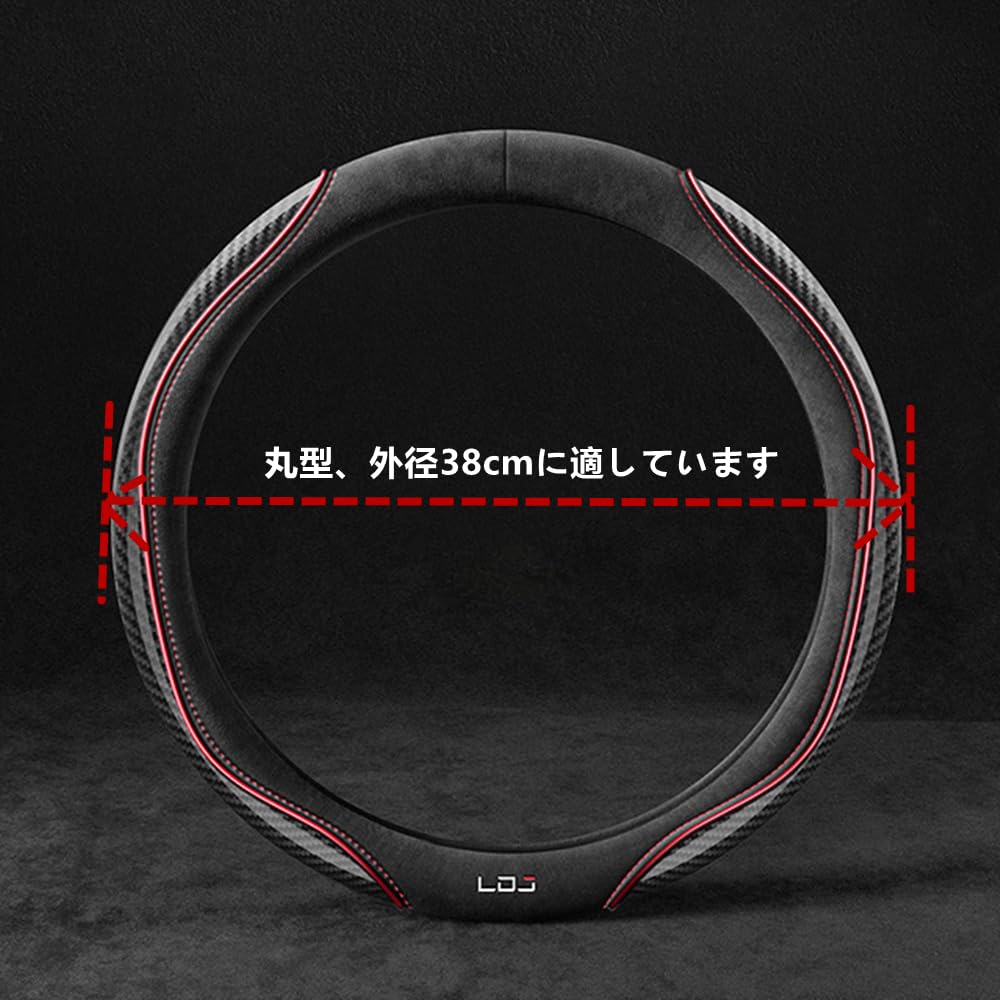 TATACLEA ハンドルカバー 軽自動車 乗用車 毛皮を変える 炭素繊維パターン ステアリングカバー滑り止めゴム内輪 四季汎用 通気性 握り 触感よく 耐久 滑り止め 汚れ防止 外径38㎝ O型 適用(スエードの赤い糸)