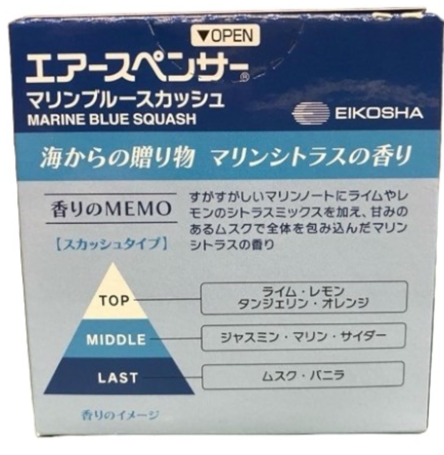 清潔感と官能的な甘さのあるムスクで全体を包み込み、豊かに広がるマリンシトラスの香りが魅力のエアースペンサーマリンブルースカッシュ。
