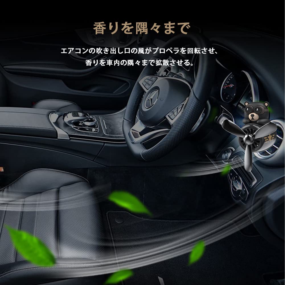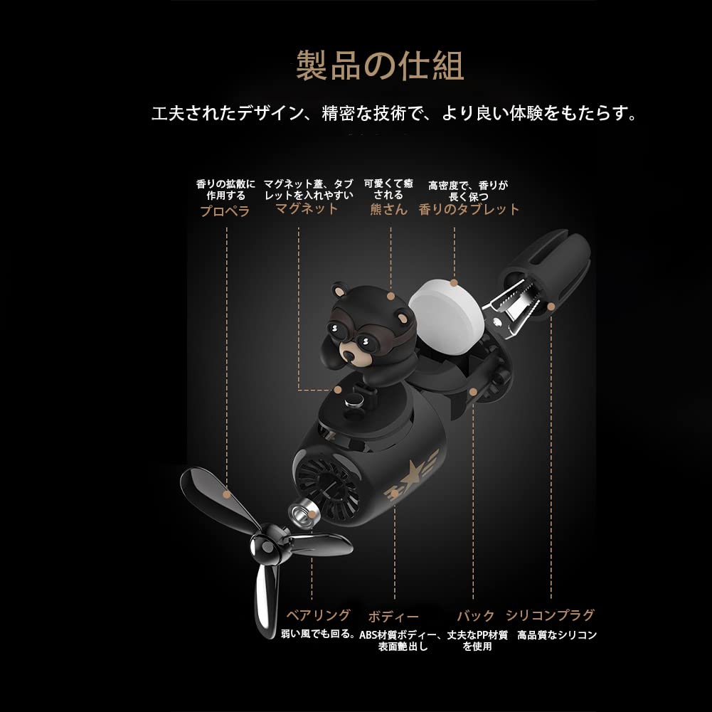 車用 芳香剤 熊 パイロット プロペラディフューザー クリップ式 除菌 消臭 エアコン取り付け型 固形香料 プレゼント/ギフト/車装飾/カー用品 (ブラック)