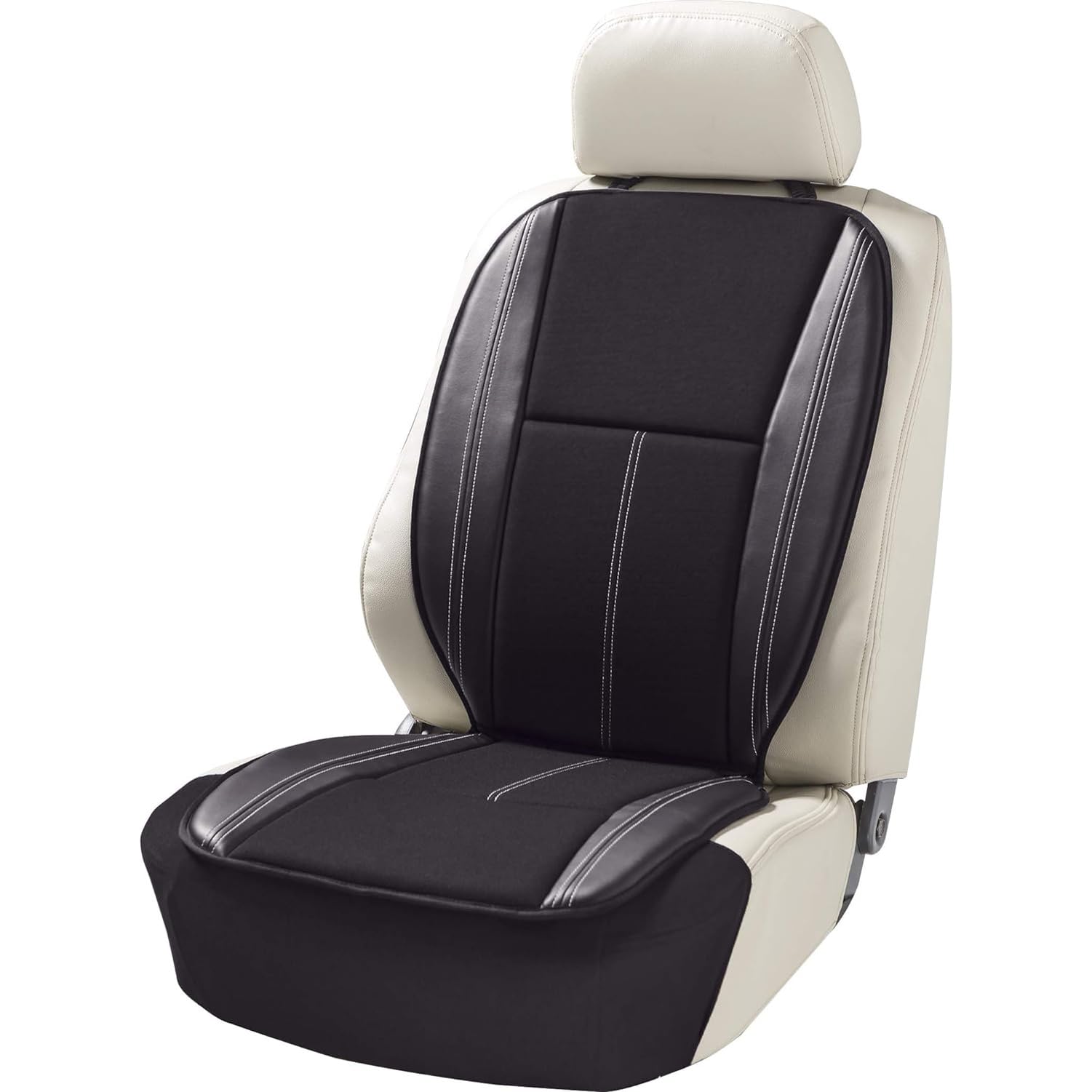 ボンフォーム(BONFORM) シートクッション ベーシックレザー 軽/普通車 ダブル スカート型ストッパー付き ダブル45x104x2cm ブラック 5345-07BK